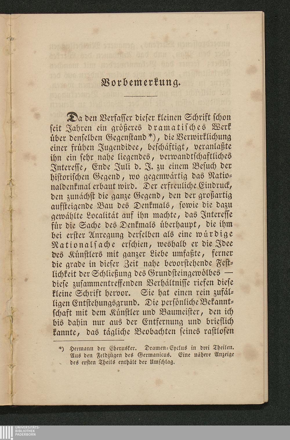 Hermann der Cherusker, und sein Denkmal : von deutscher Nation im neunzehnten Jahrhundert ihm errichtet ; Broschüre veranlaßt bei Gelegenheit der Feier der Schließung des Grundsteingewölbes am 8. September 1841 ; (geschrieben am Fuße des Denkmals im August 1841) / von F. J. Schwanke