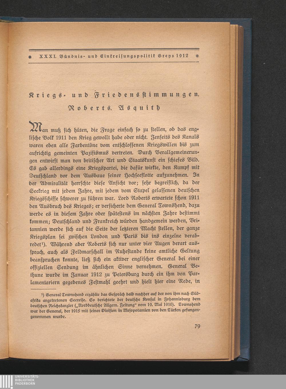 Kriegs- und Friedensstimmungen. Roberts. Asquith