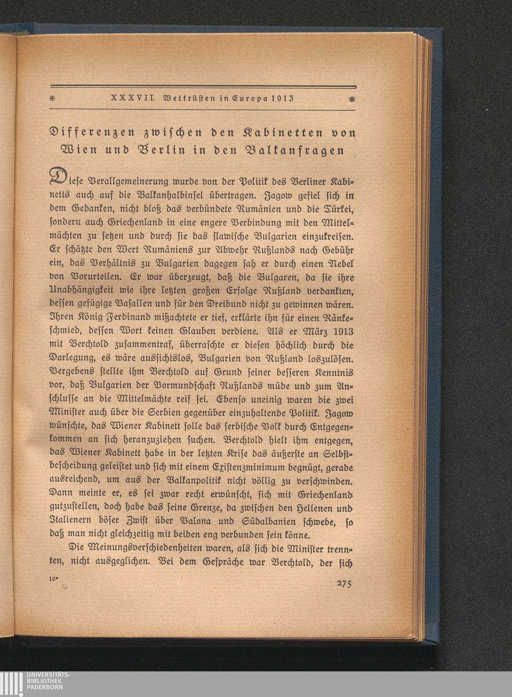 Differenzen zwischen den Kabinetten von Wien und Berlin in den Balkanfragen