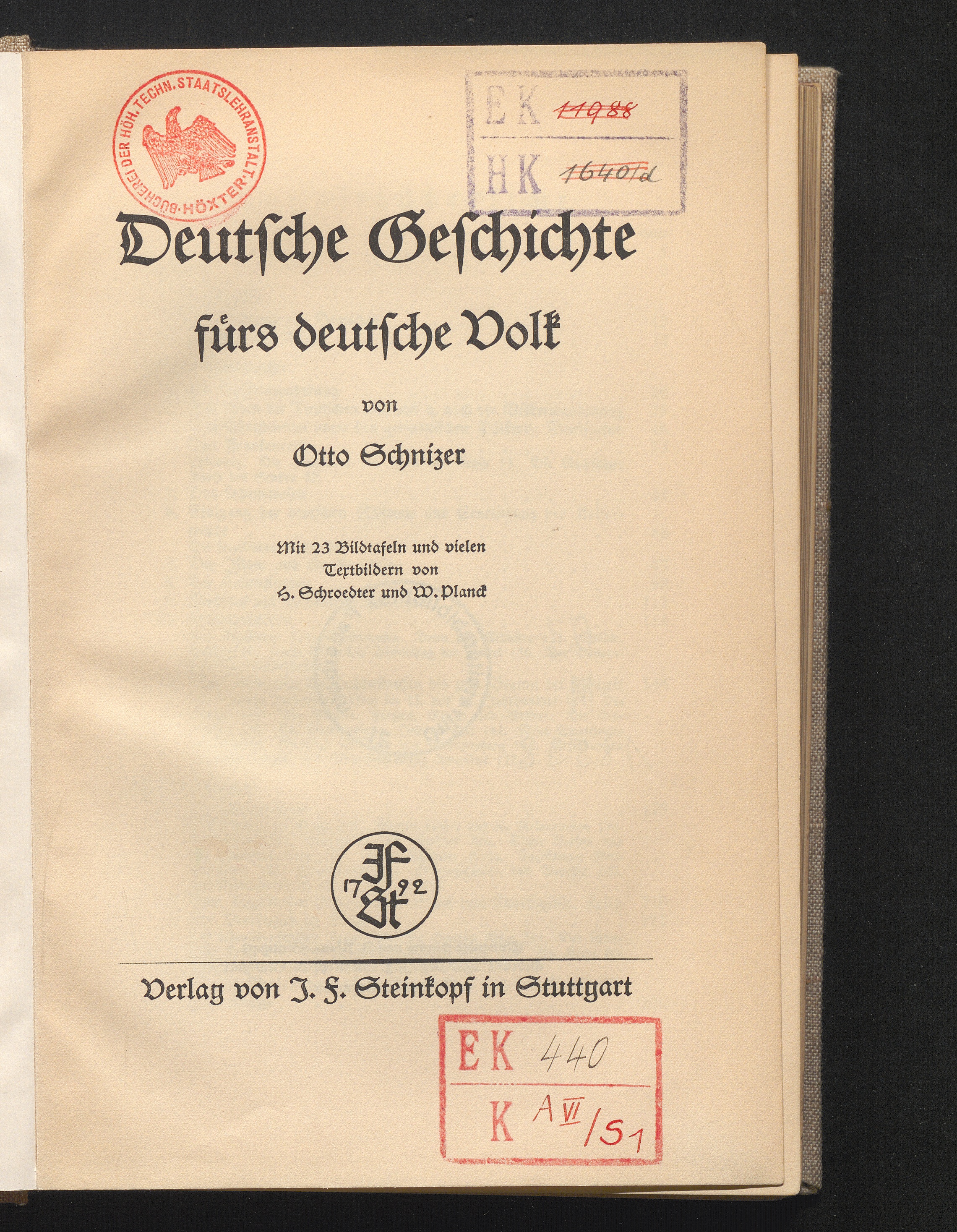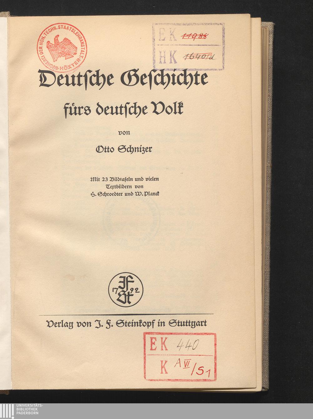 Deutsche Geschichte fürs deutsche Volk : mit 23 Bildtafeln und Textbildern / von Otto Schnizer