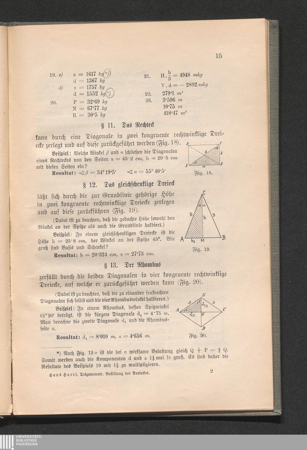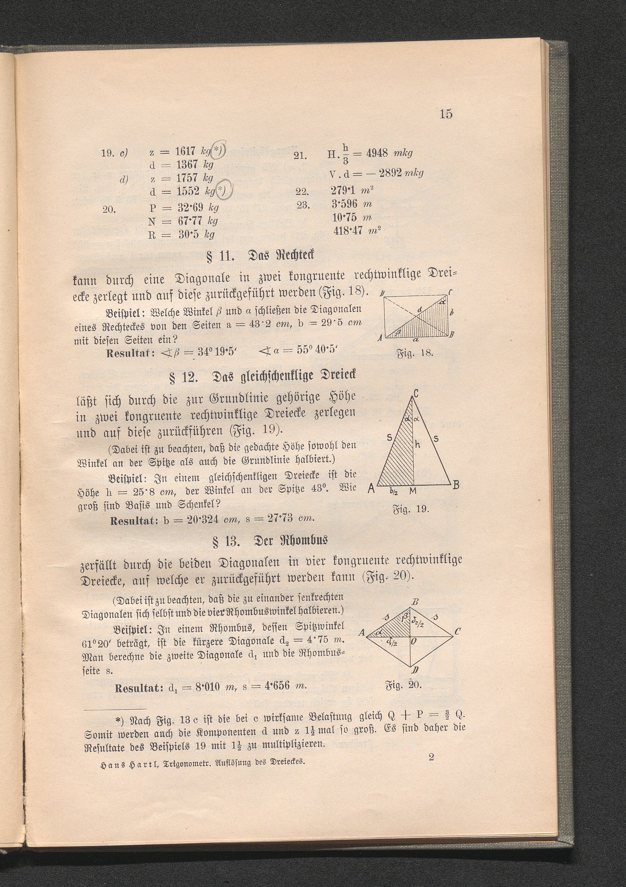 Die trigonometrische Auflösung des Dreieckes und der auf Dreiecke zurückzuführenden Figuren : für den Gebrauch an Werkmeister- und Baugewerkeschulen und für den Selbstunterricht / bearbeitet von Hans Hartl
