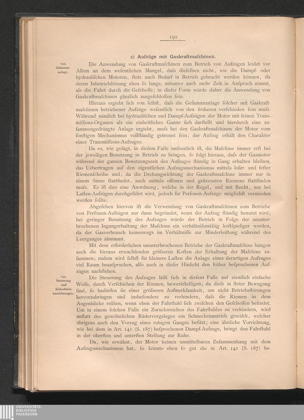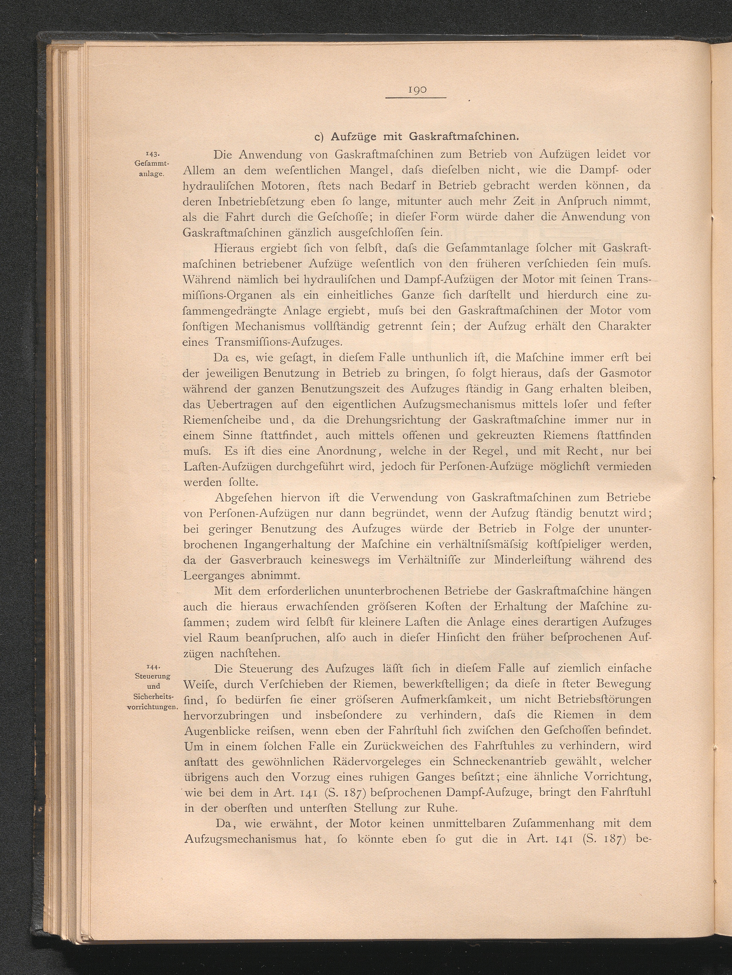 c) Aufzüge mit Gaskraftmaschinen.
