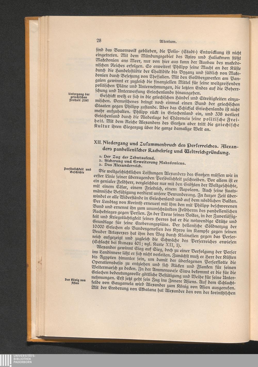 XII. Niedergang und Zusammebruch des Perserreiches. Alexanders panhellenischer Rachekrieg[...]
