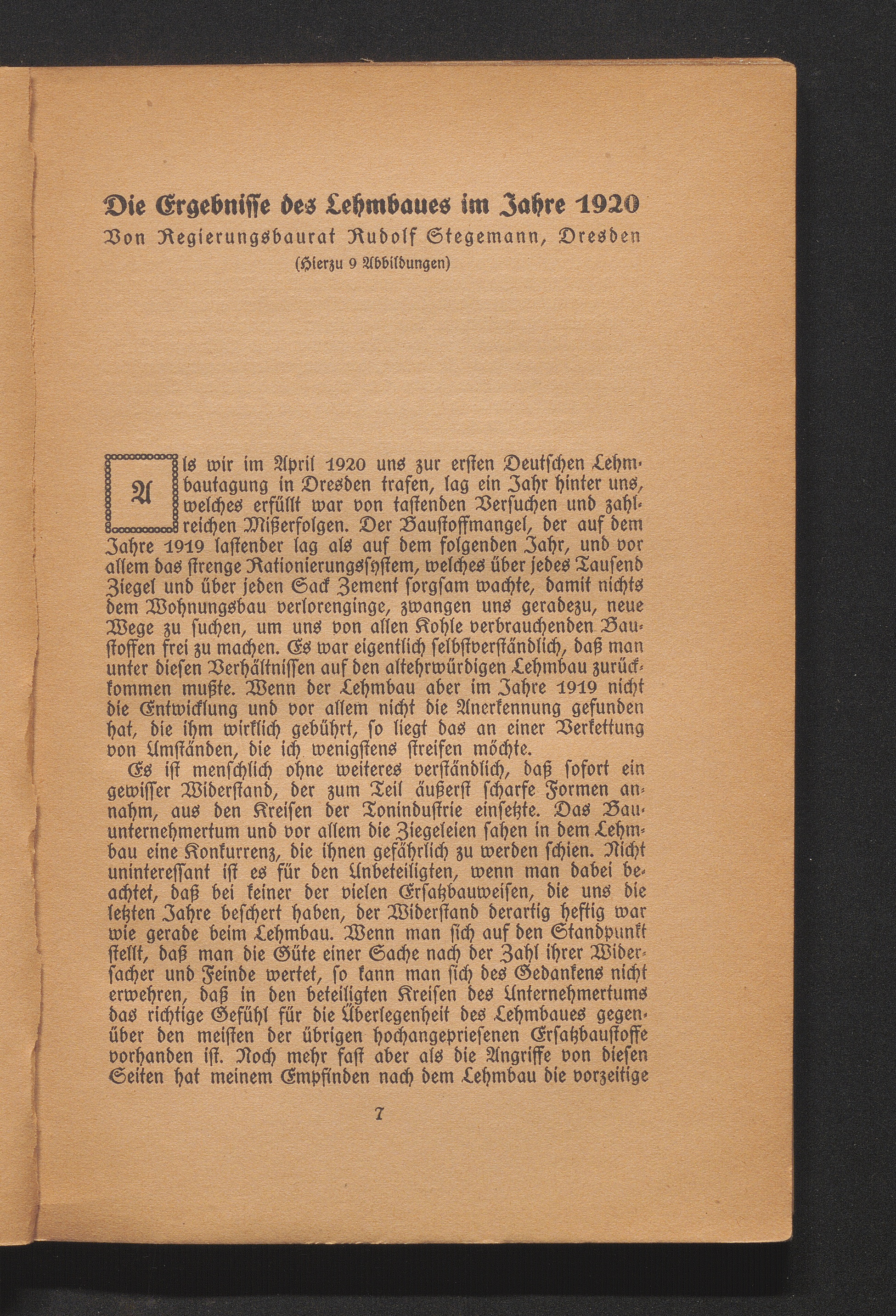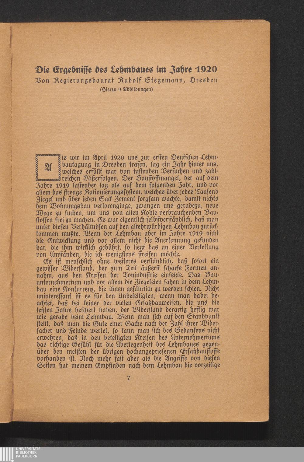 Die Ergebnisse des Lehmbaues im Jahre 1920. Von Regierungsbaurat Rudolf Stegemann.[...]