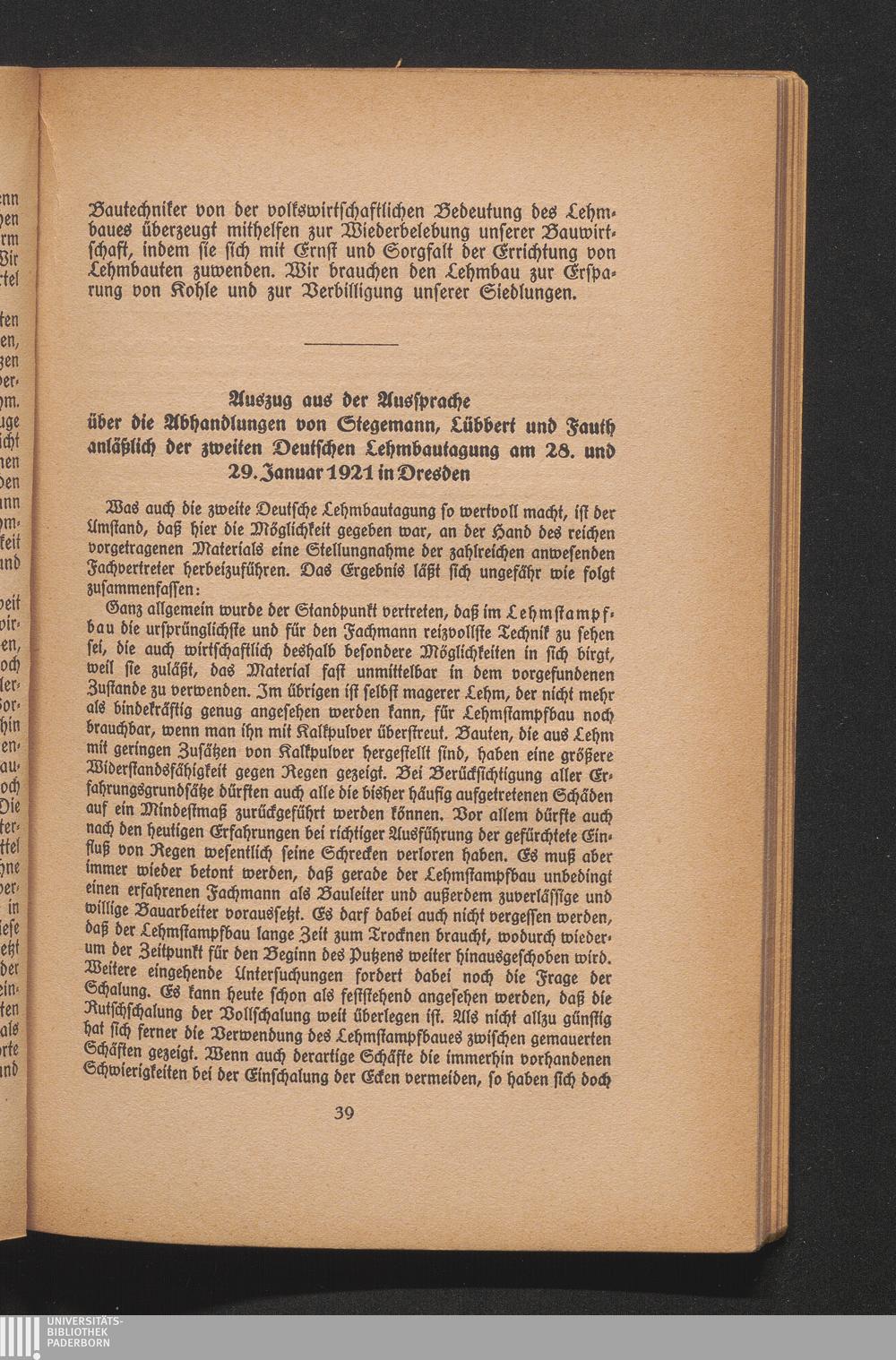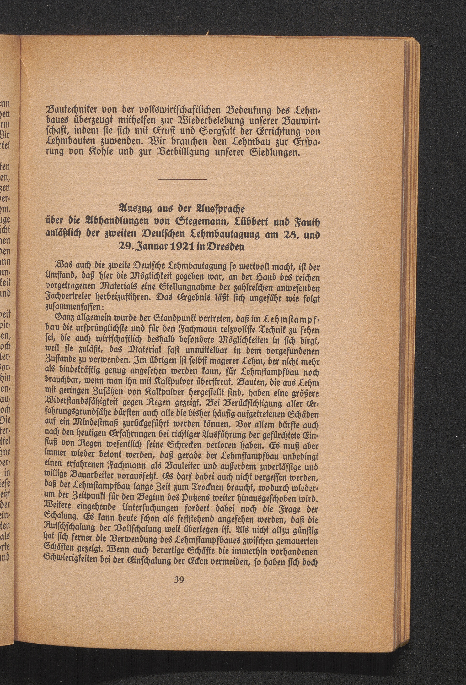 Die Lehmbauweise : 7 Vorträge, gehalten am 28. und 29. Januar 1921 in Dresden, auf der 2. Tagung des Deutschen Ausschusses zur Förderung der Lehmbauweise / Hrsg.: Rudolf Stegemann