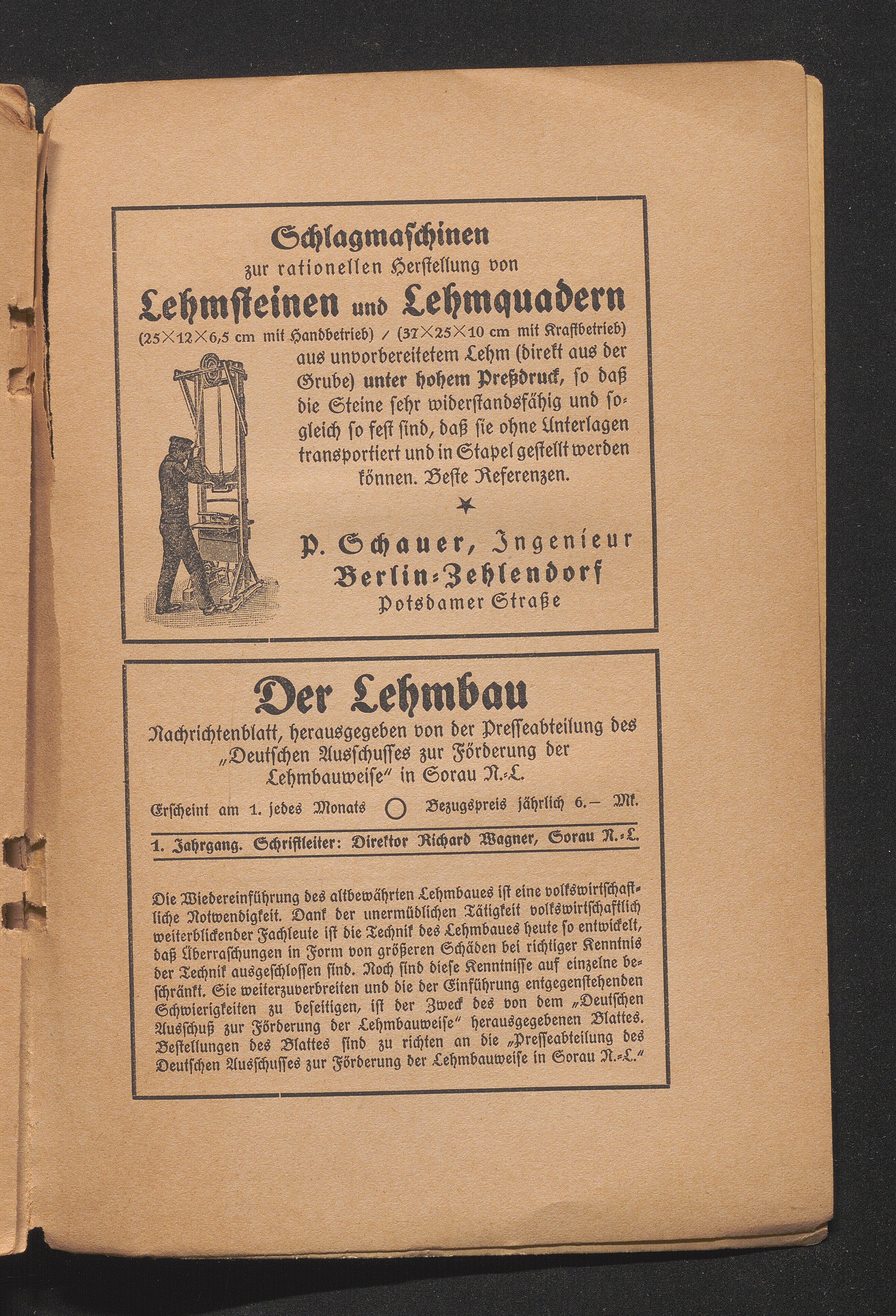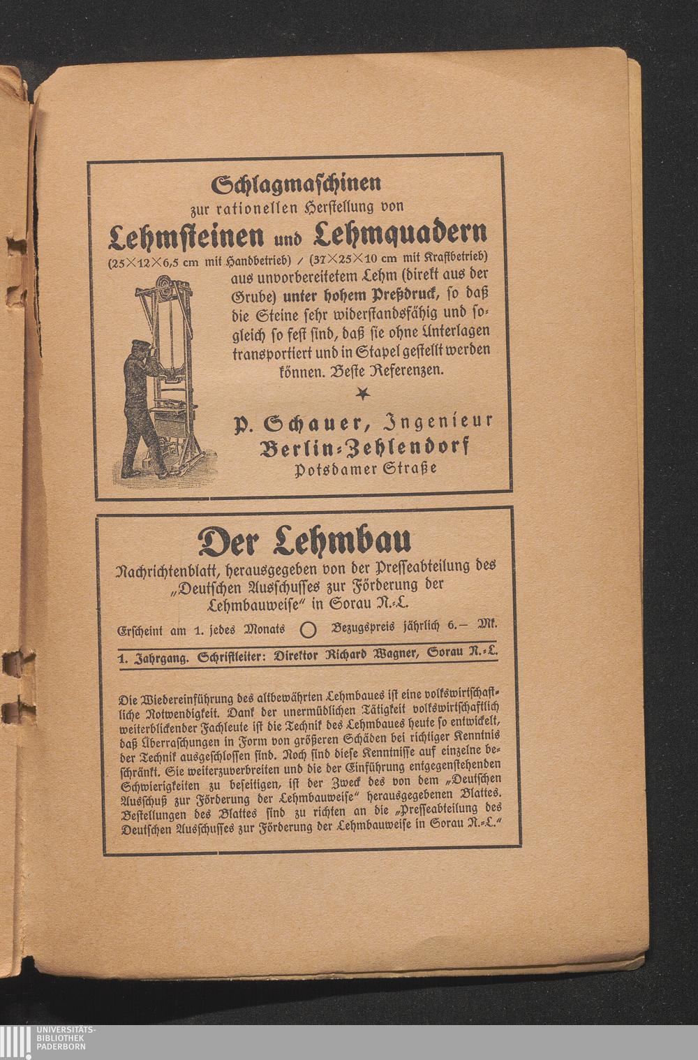 Die Einflüsse des Regens auf den Lehmbau. Von Stadtbaurat Fauth. Hierzu 1 Abbildung