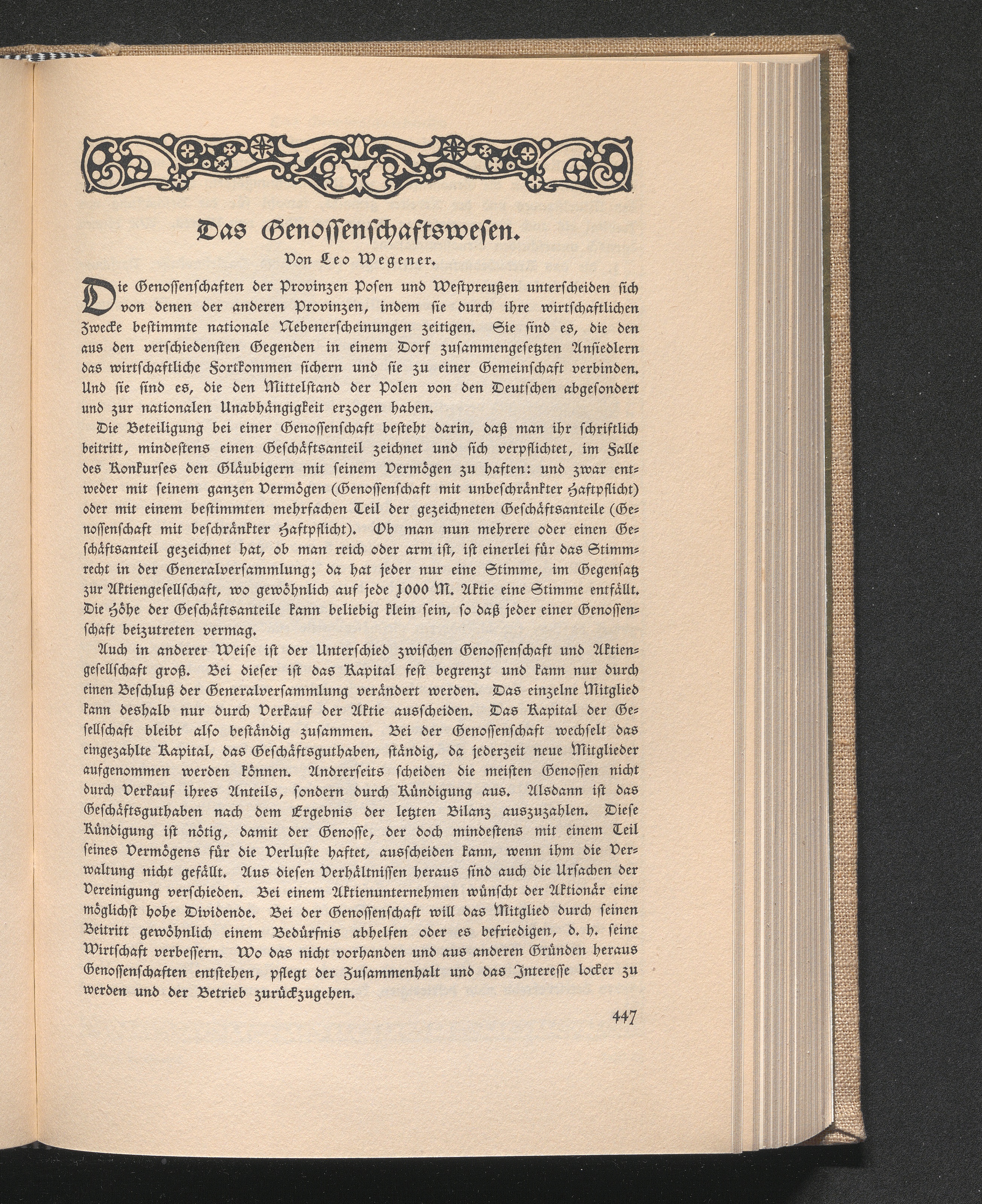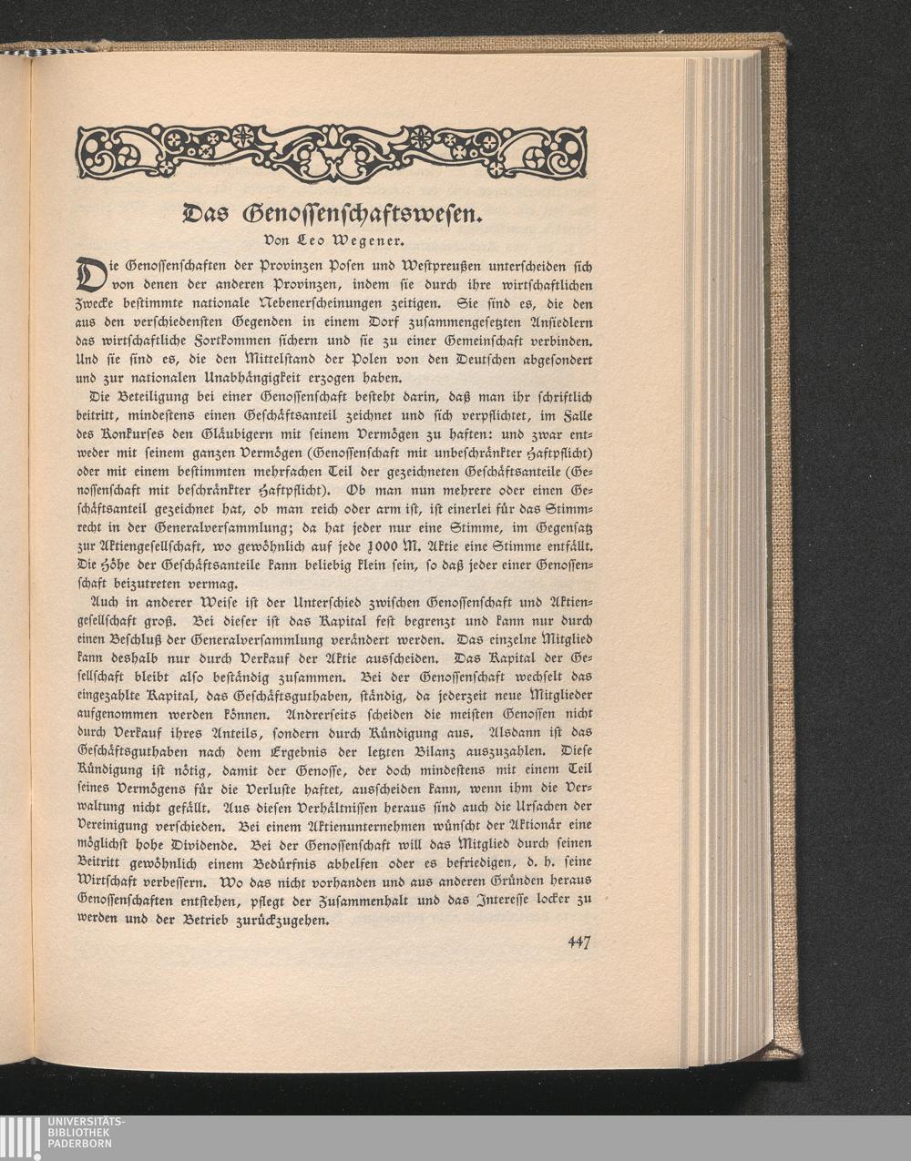 Das Genossenschaftswesen. Von Verbandsdirektor Dr. Leo Wegener, Posen. Bildertafel[...]
