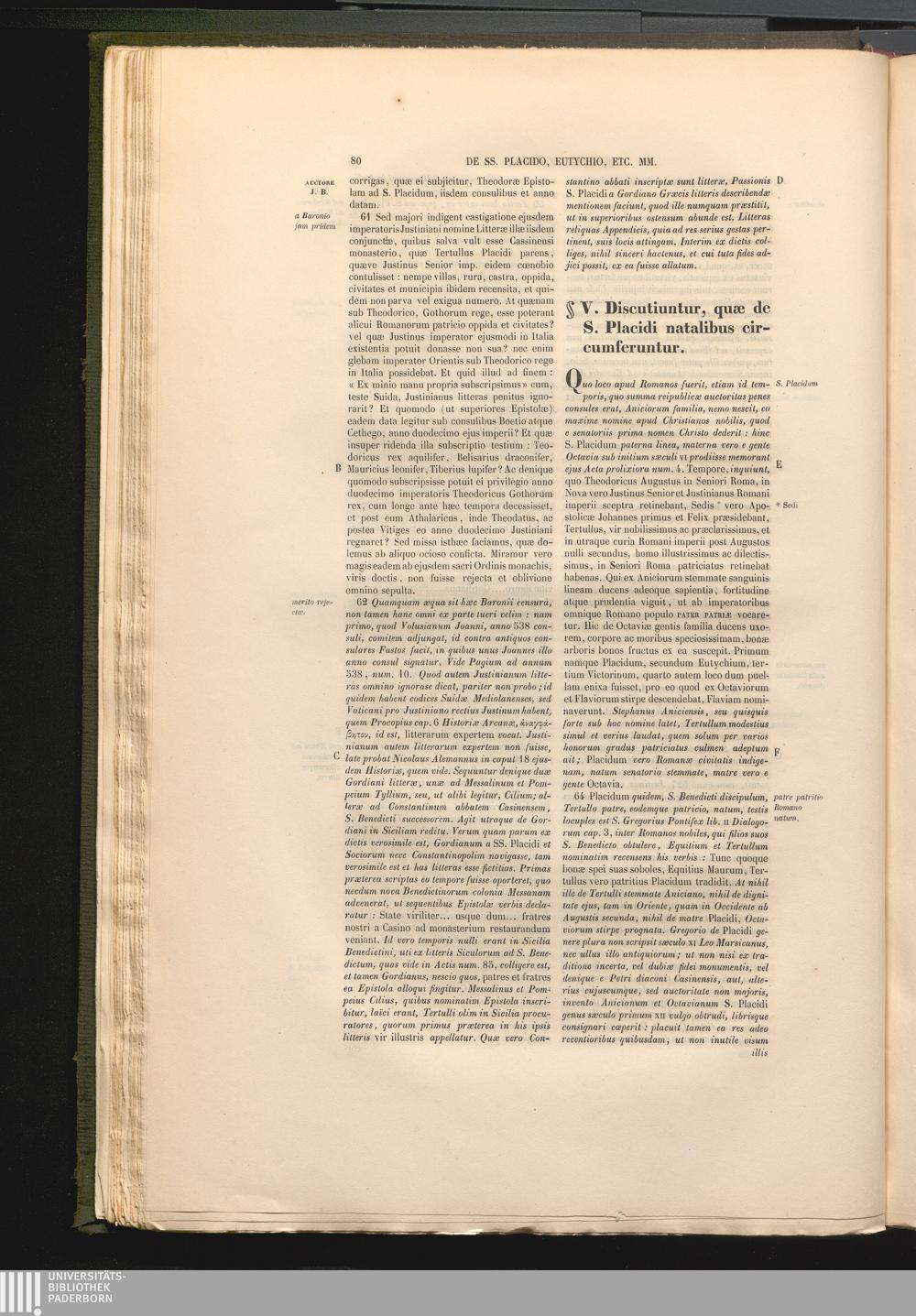 §. V. Discutiuntur, quæ de S. Placidi natalibus circumferuntur.
