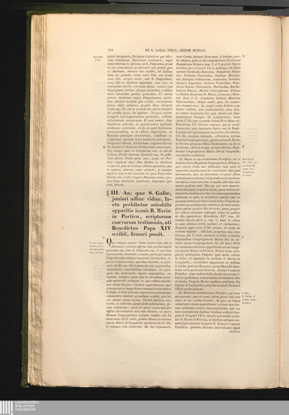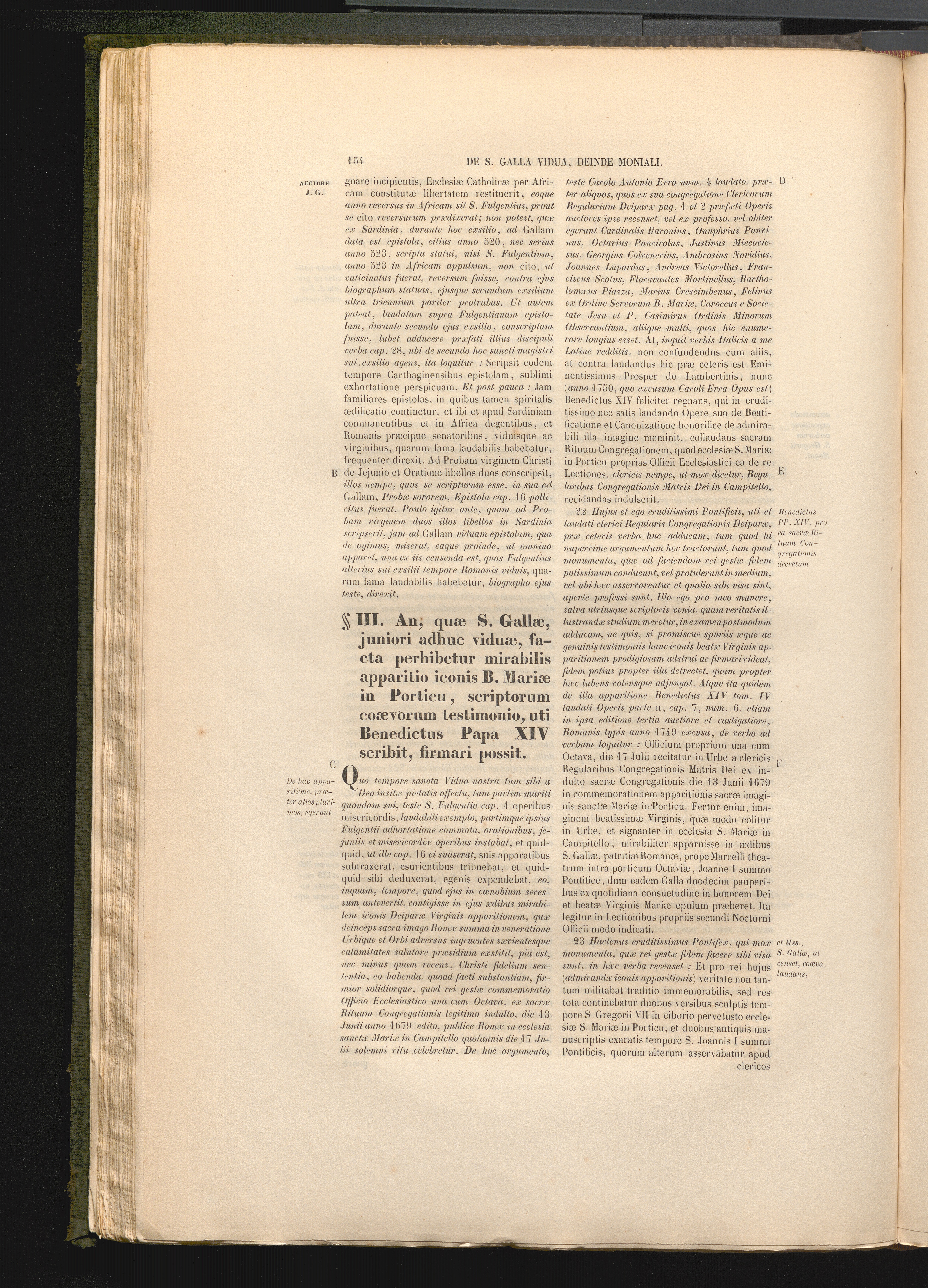 §. III. An, quæ S. Gallæ, juniori adhuc viduæ, facta perhibetur mirabilis apparitio[...]