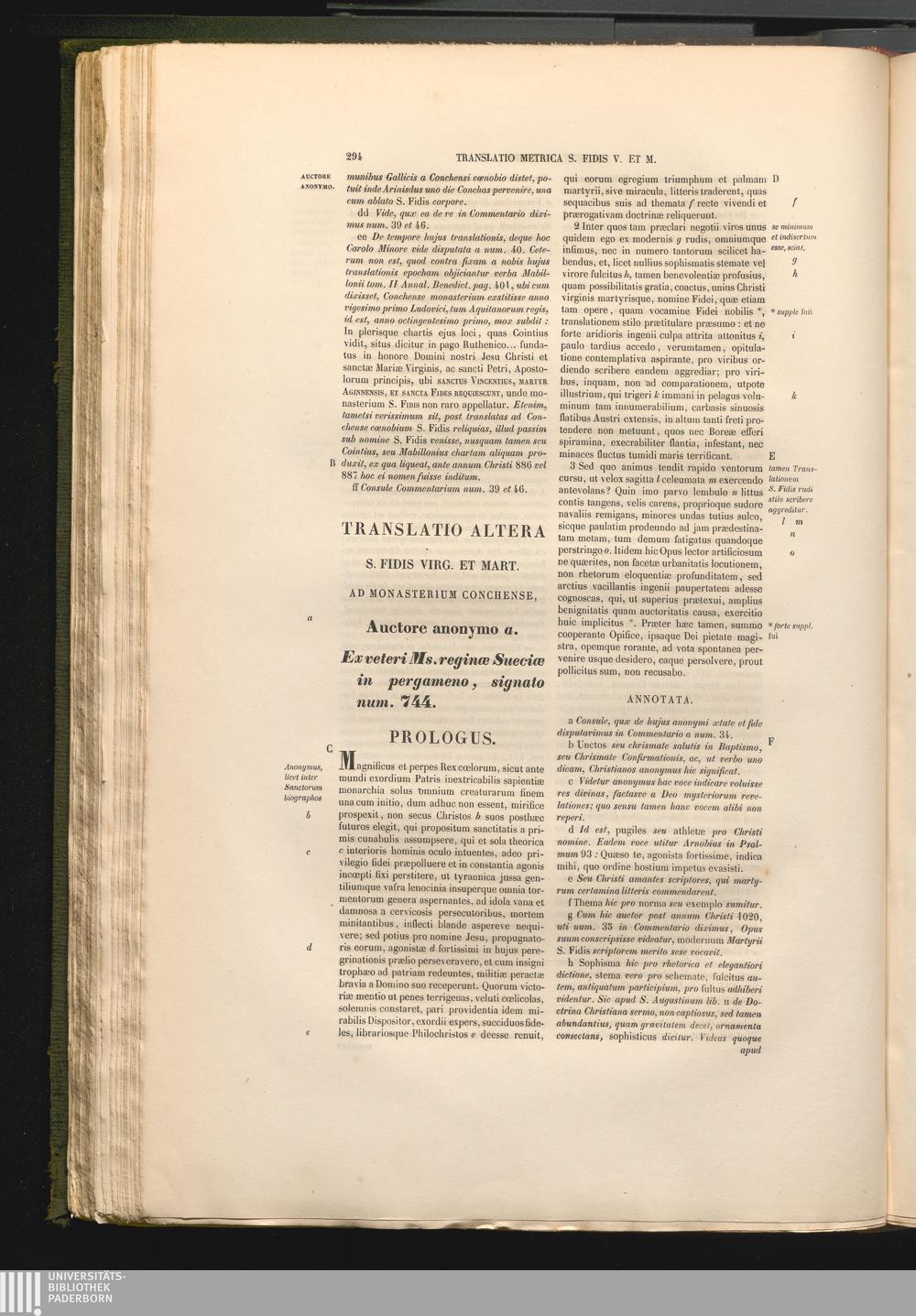 Translatio Altera S. Fidis Virg. Et mart. Ad Monasterium Conchense, Auctore anonymo[...]