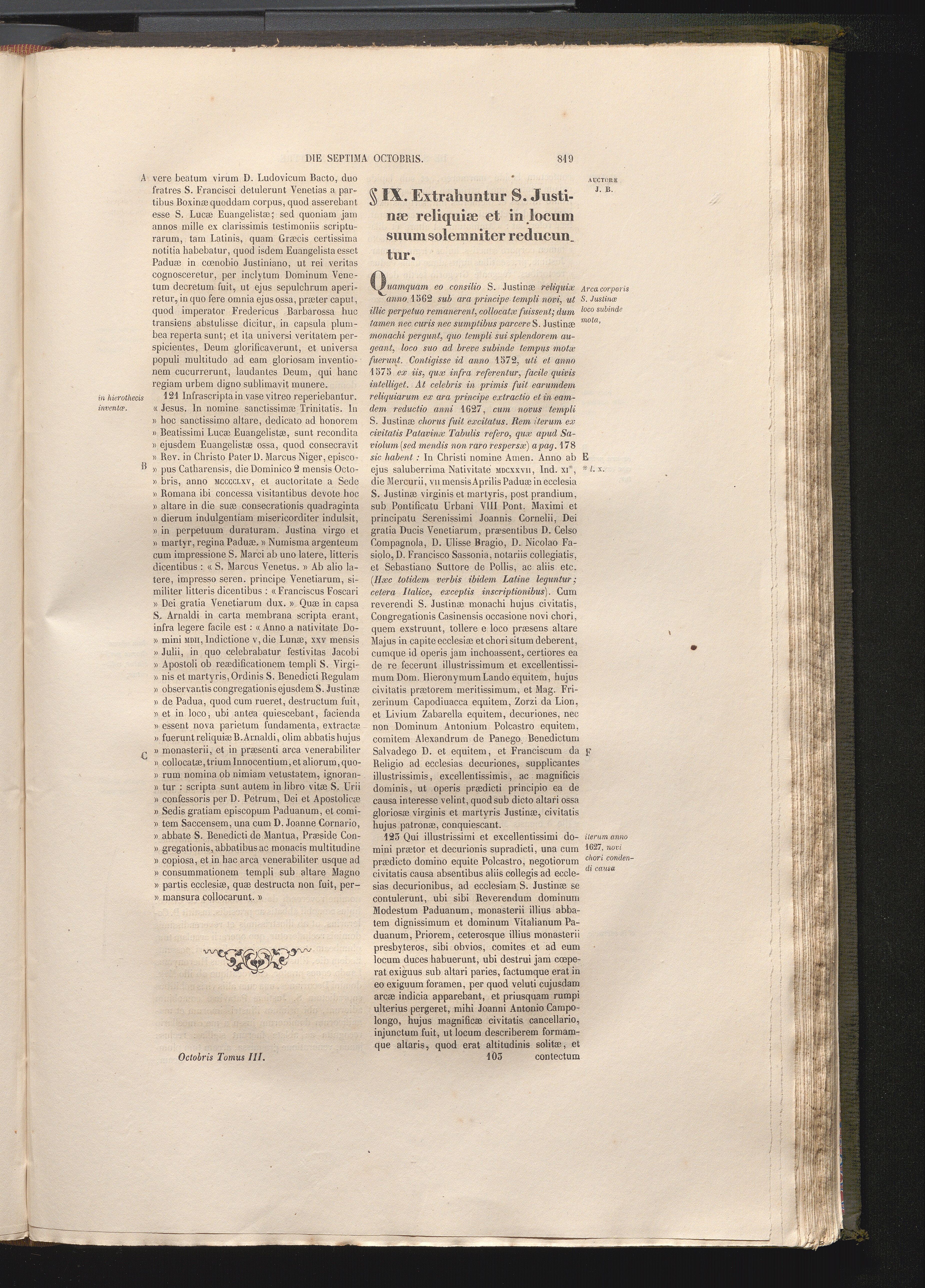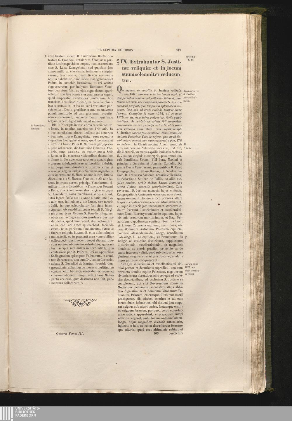 §. IX. Extrahuntur S. Justinæ reliquiæ et in locum suum solemniter reducuntur.