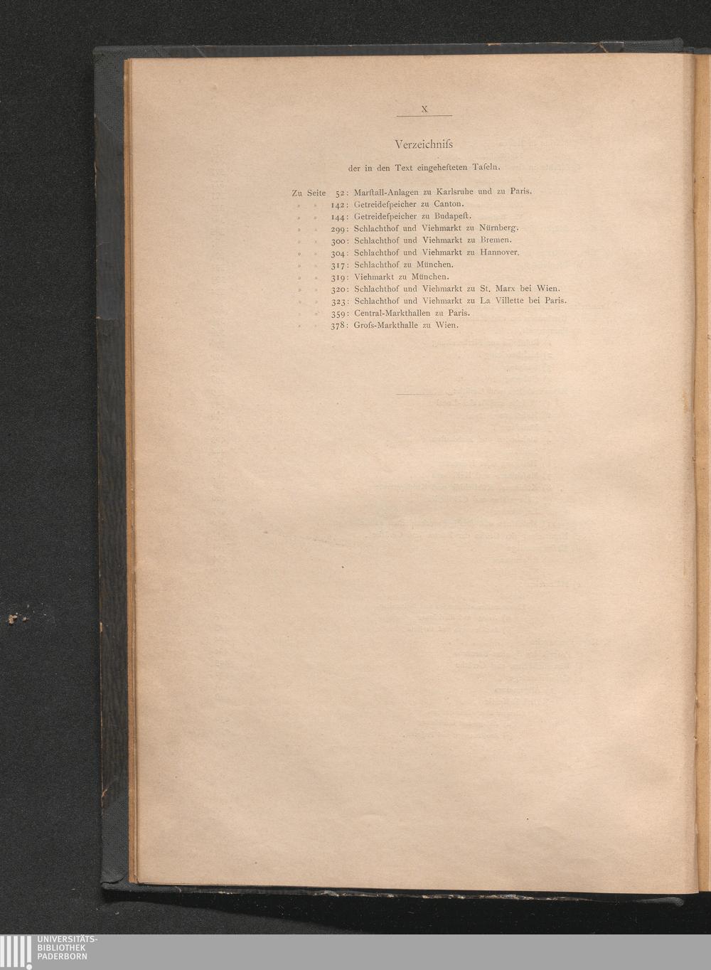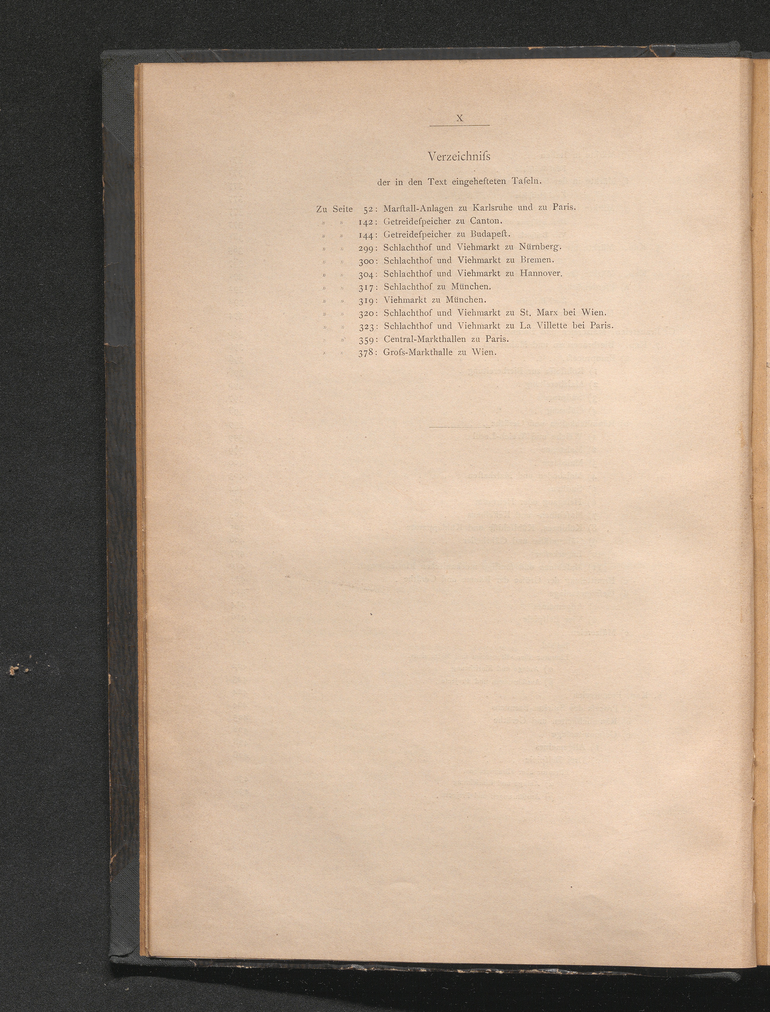 Verzeichnis der in den Text eingehefteten Tafeln.