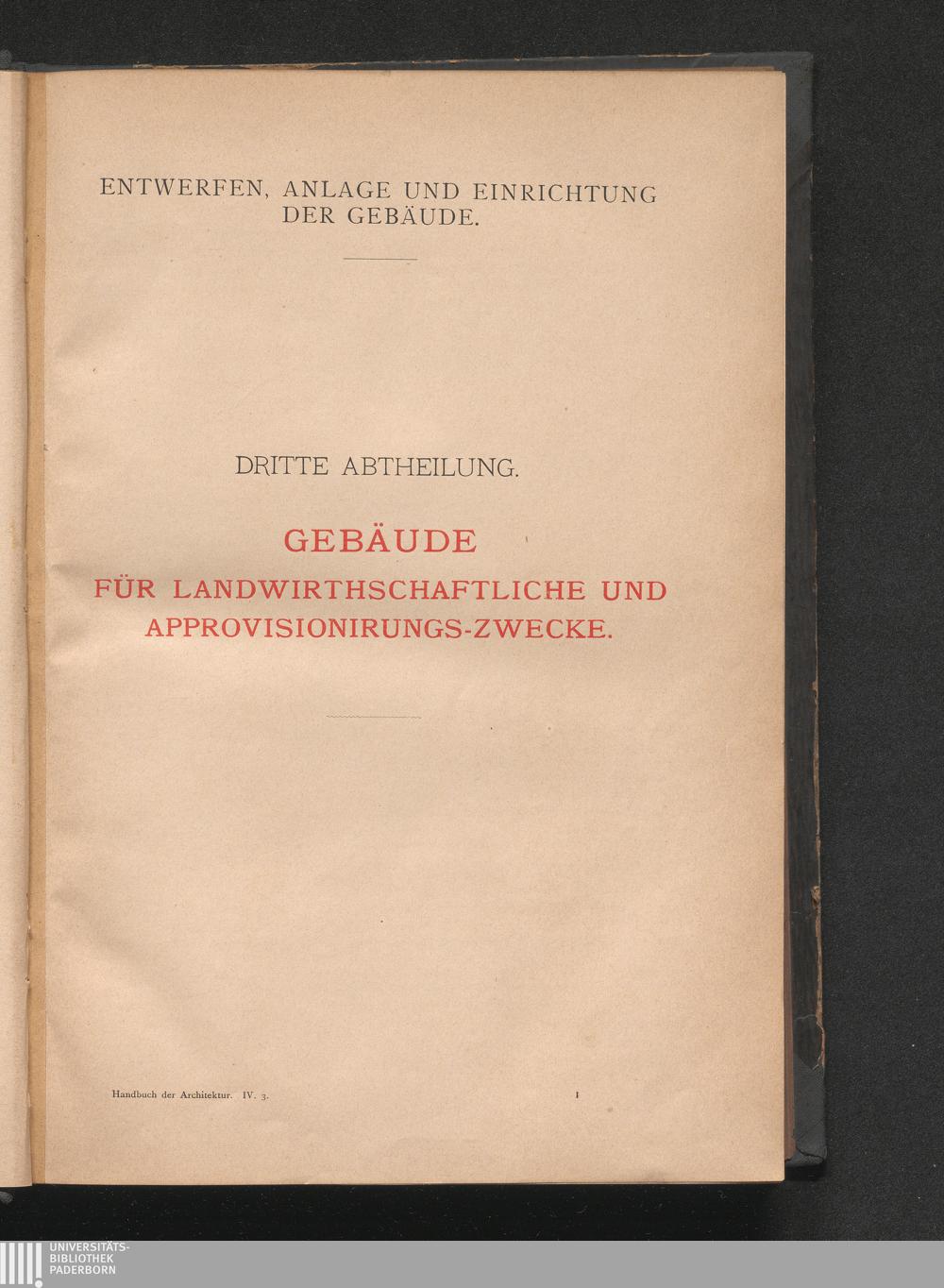 Dritte Abtheilung: Gebäude für landwirtschaftliche und Approvisionirungs-Zwecke.[...]