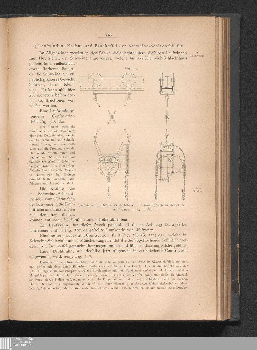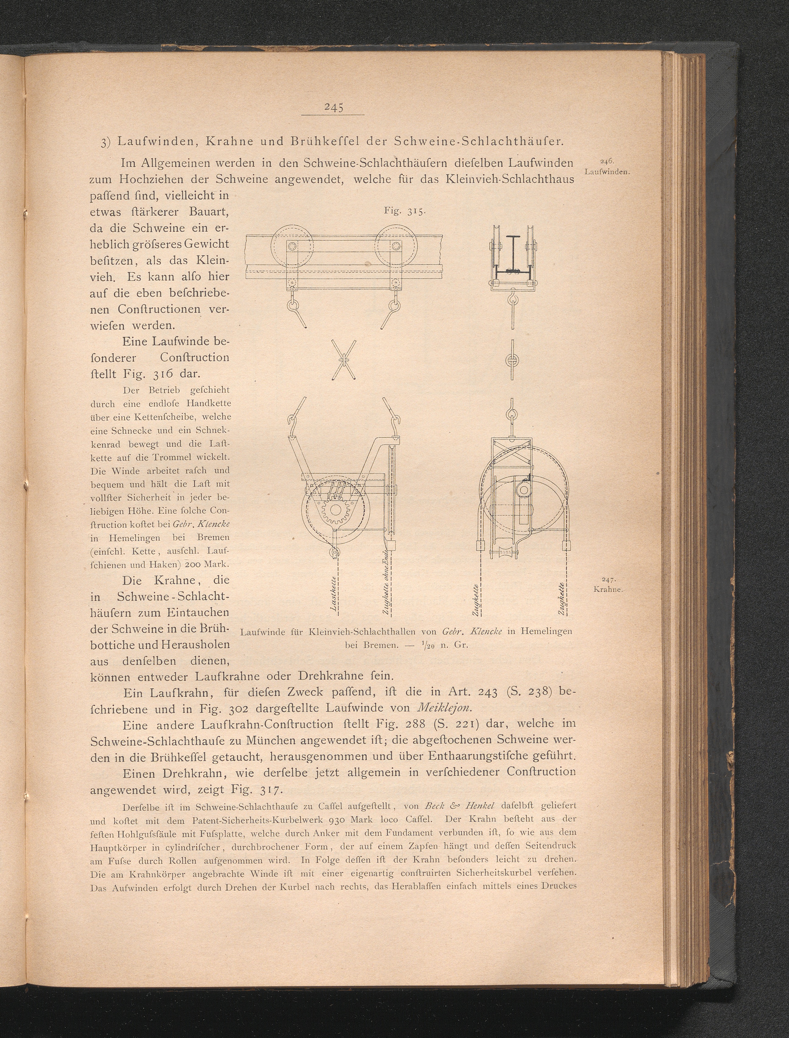 3) Laufwinden, Krahne und Brühkessel der Schweine-Schlachthäuser.