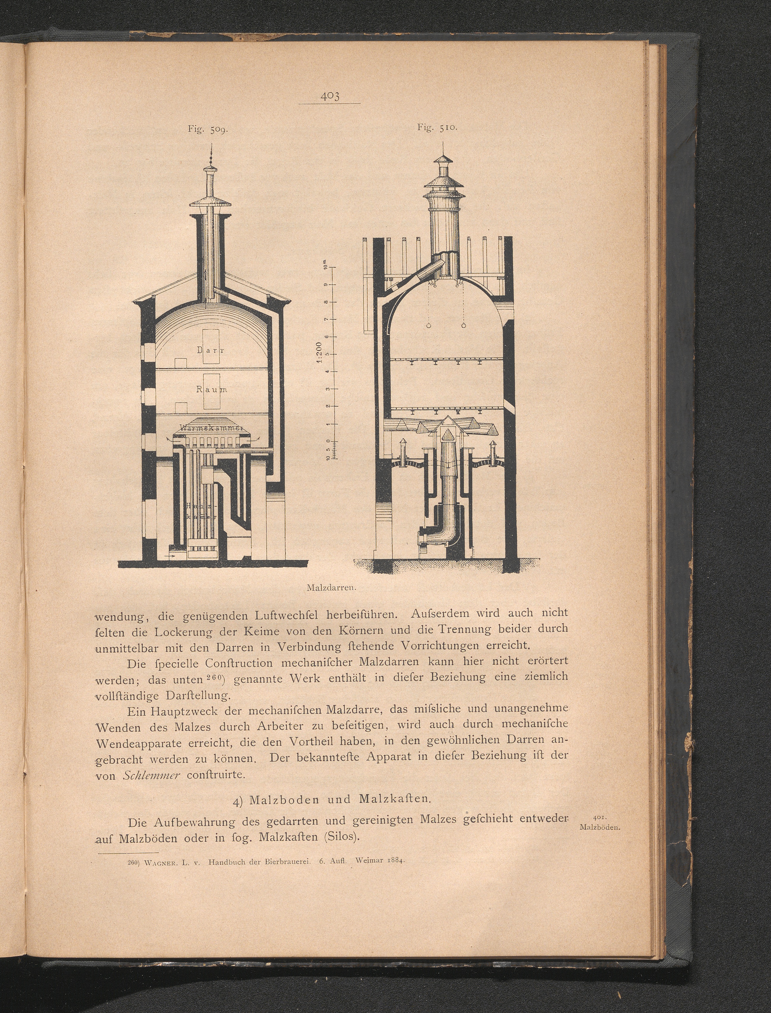4) Malzboden und Malzkaften.