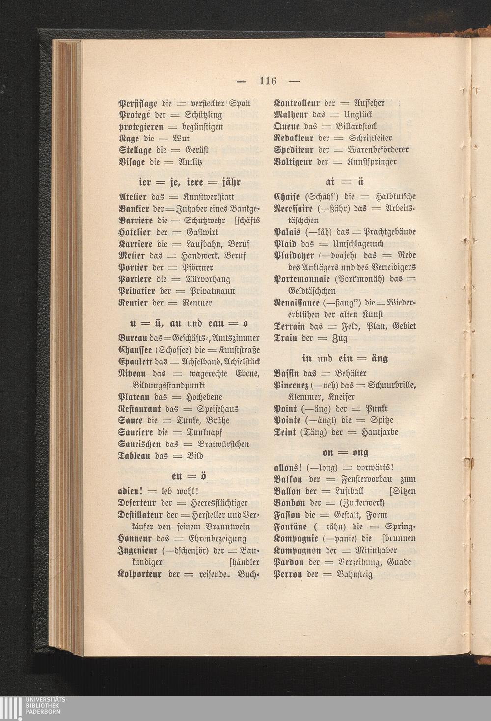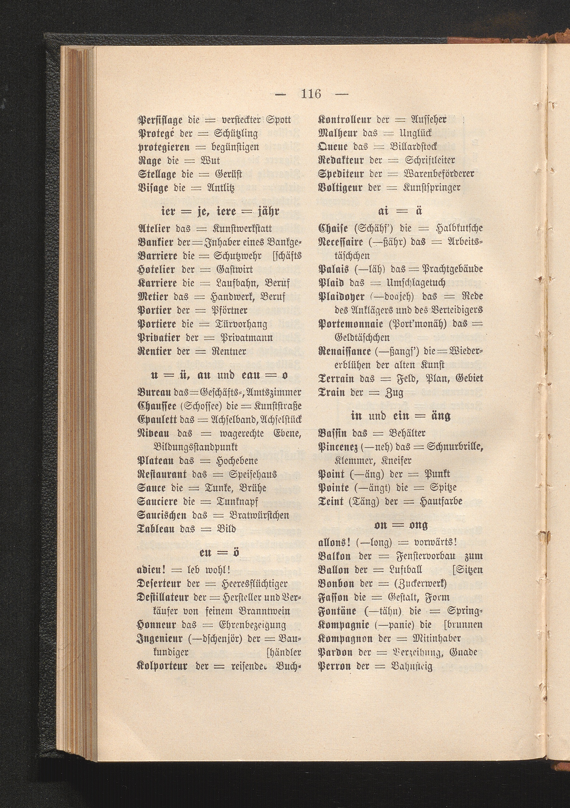 2) ier, iere; u, au, eau; eu; ai; in und ein; on