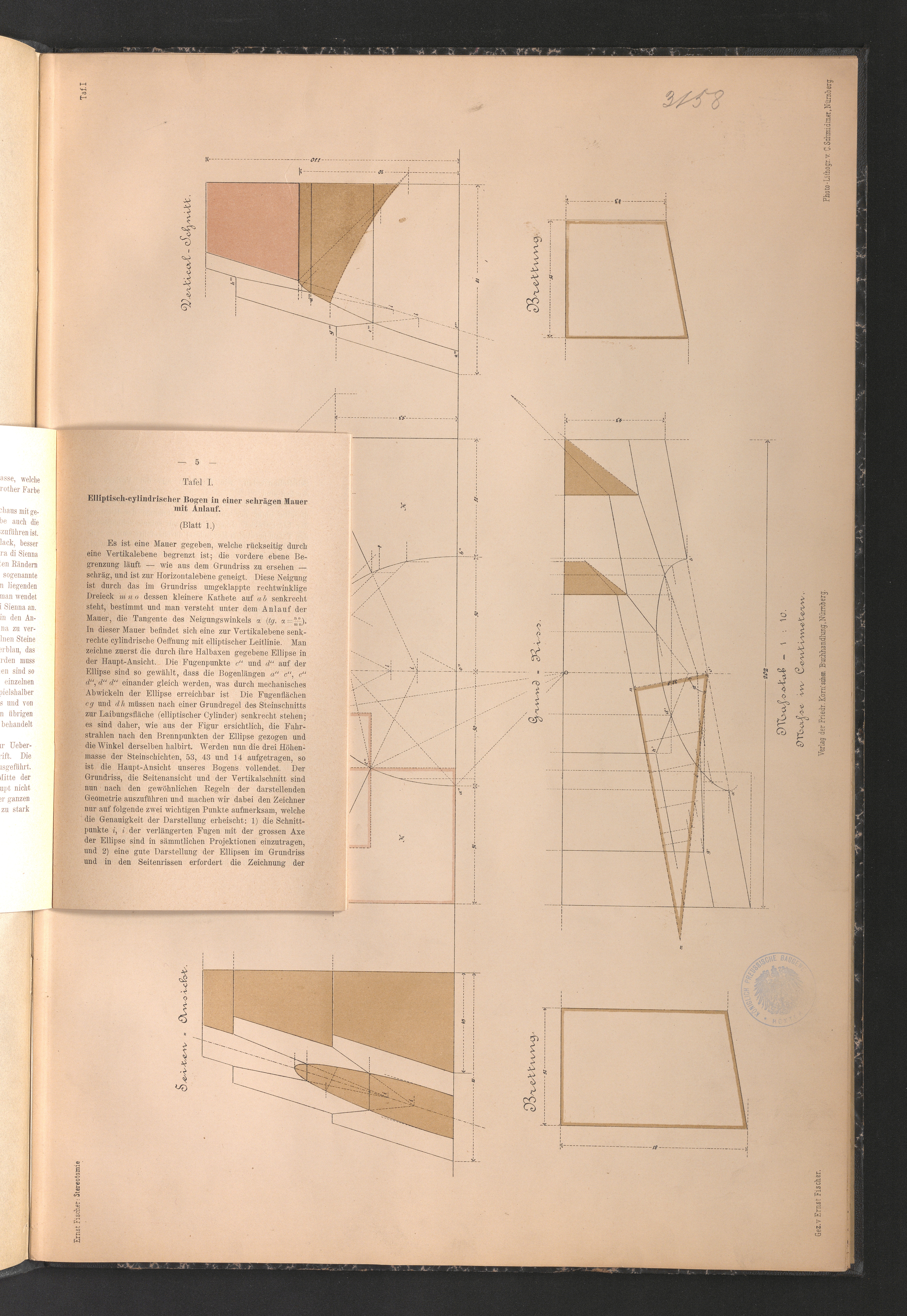 Taf. I. Elliptisch-cylindrischer Bogen in einer schrägen Mauer mit Anlauf. Blatt 1