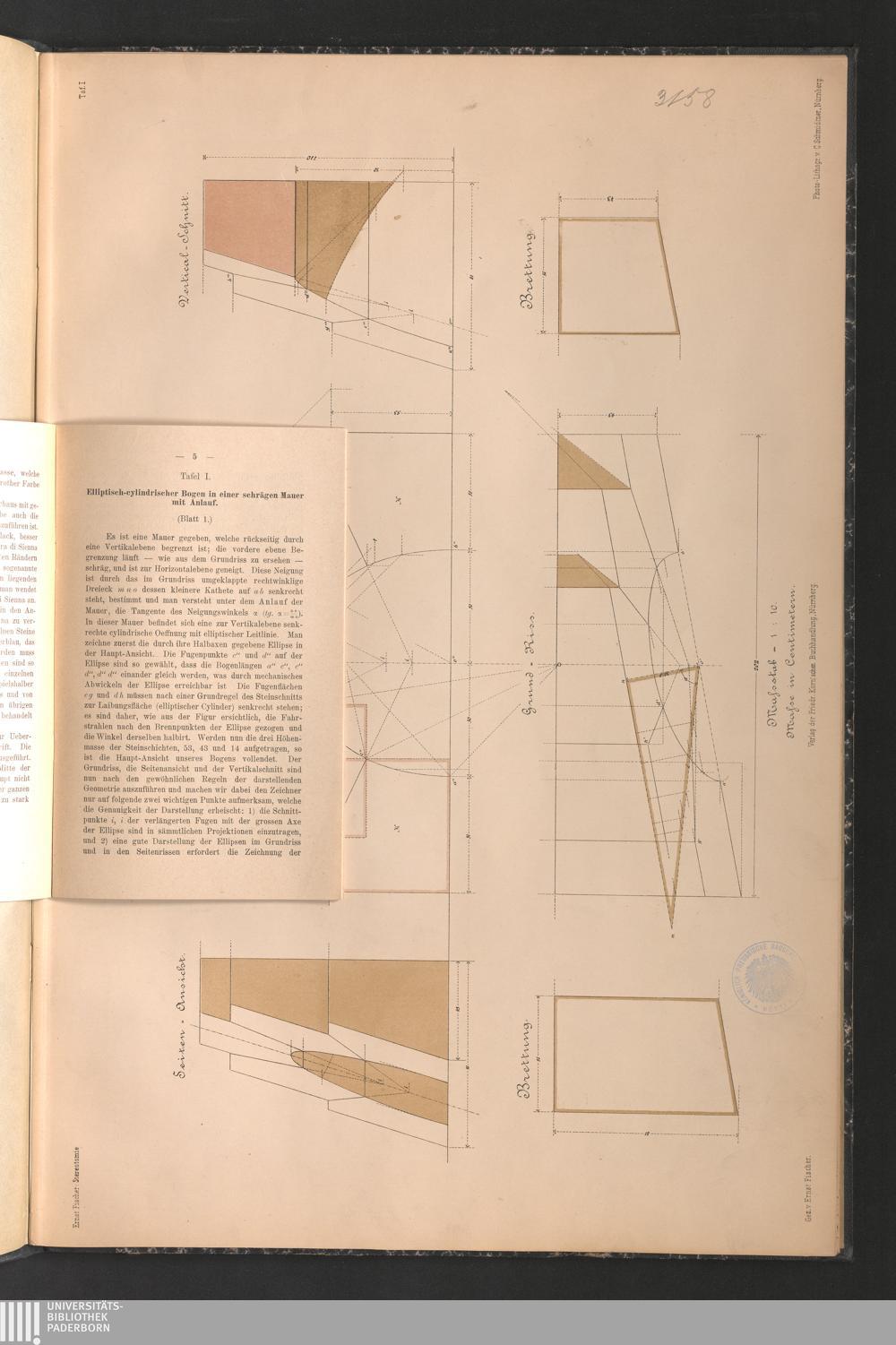 Taf. I. Elliptisch-cylindrischer Bogen in einer schrägen Mauer mit Anlauf. Blatt[...]