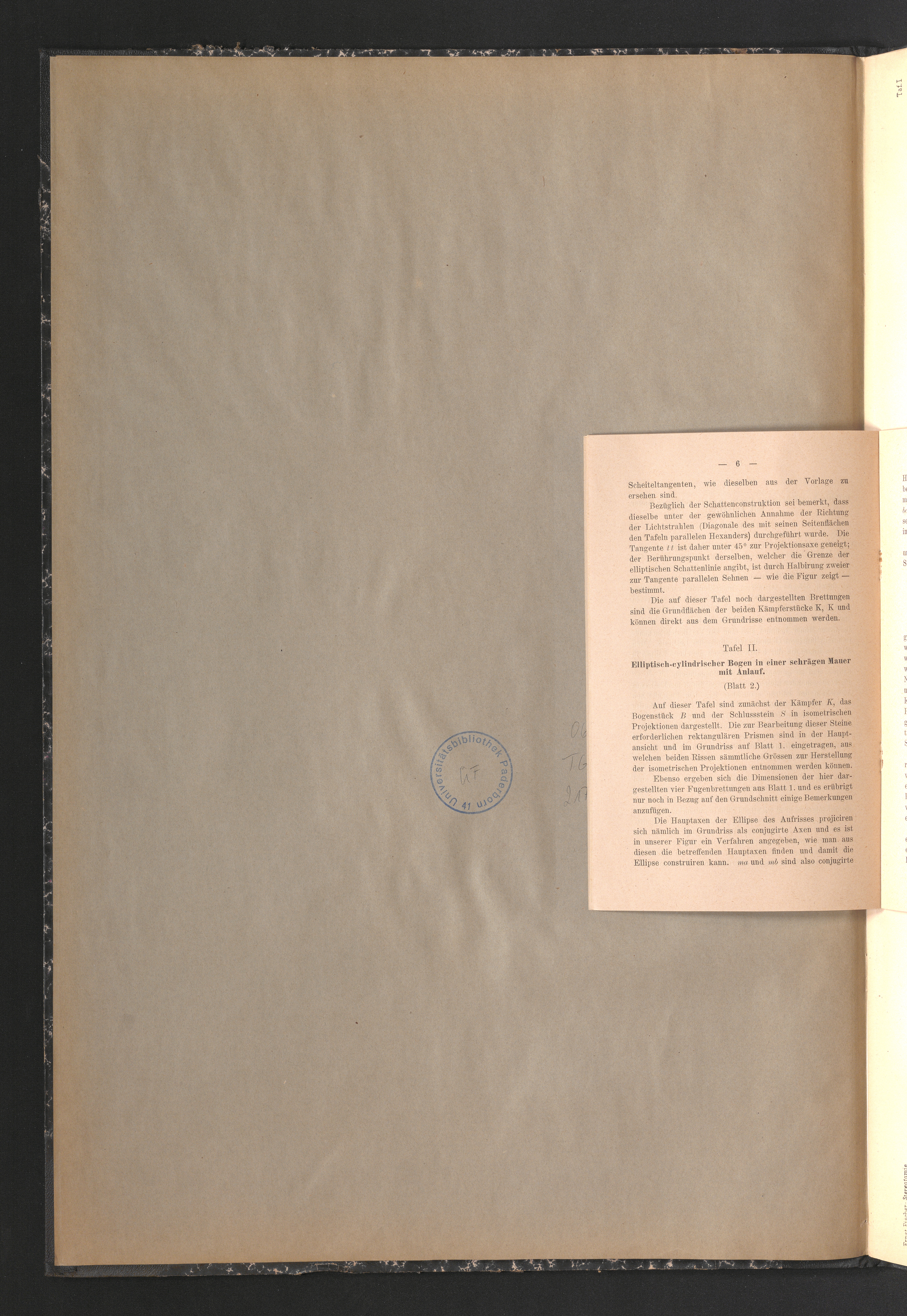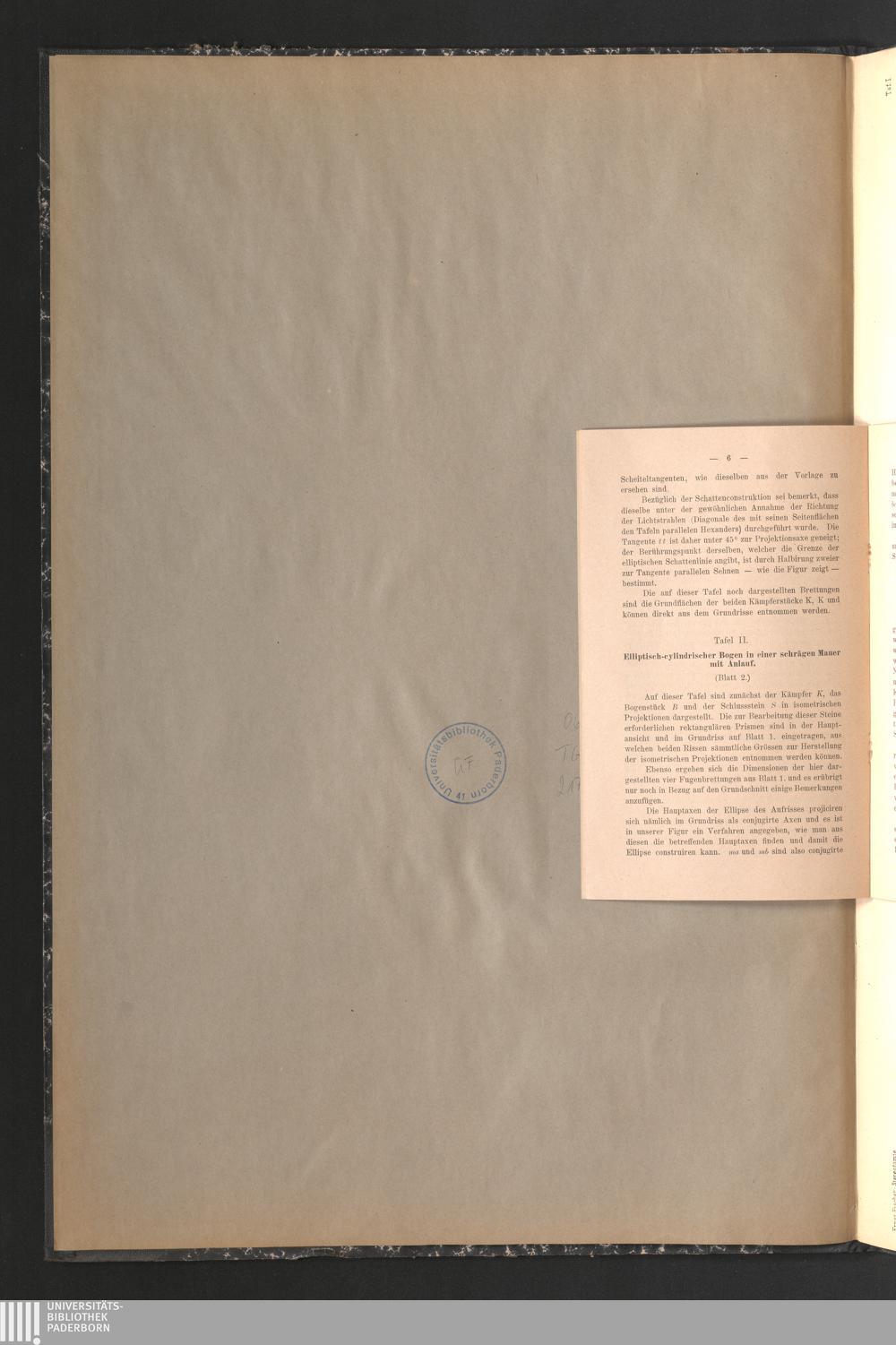 Taf. II. Elliptisch-cylindrischer Bogen in einer schrägen Mauer mit Anlauf. Blatt[...]