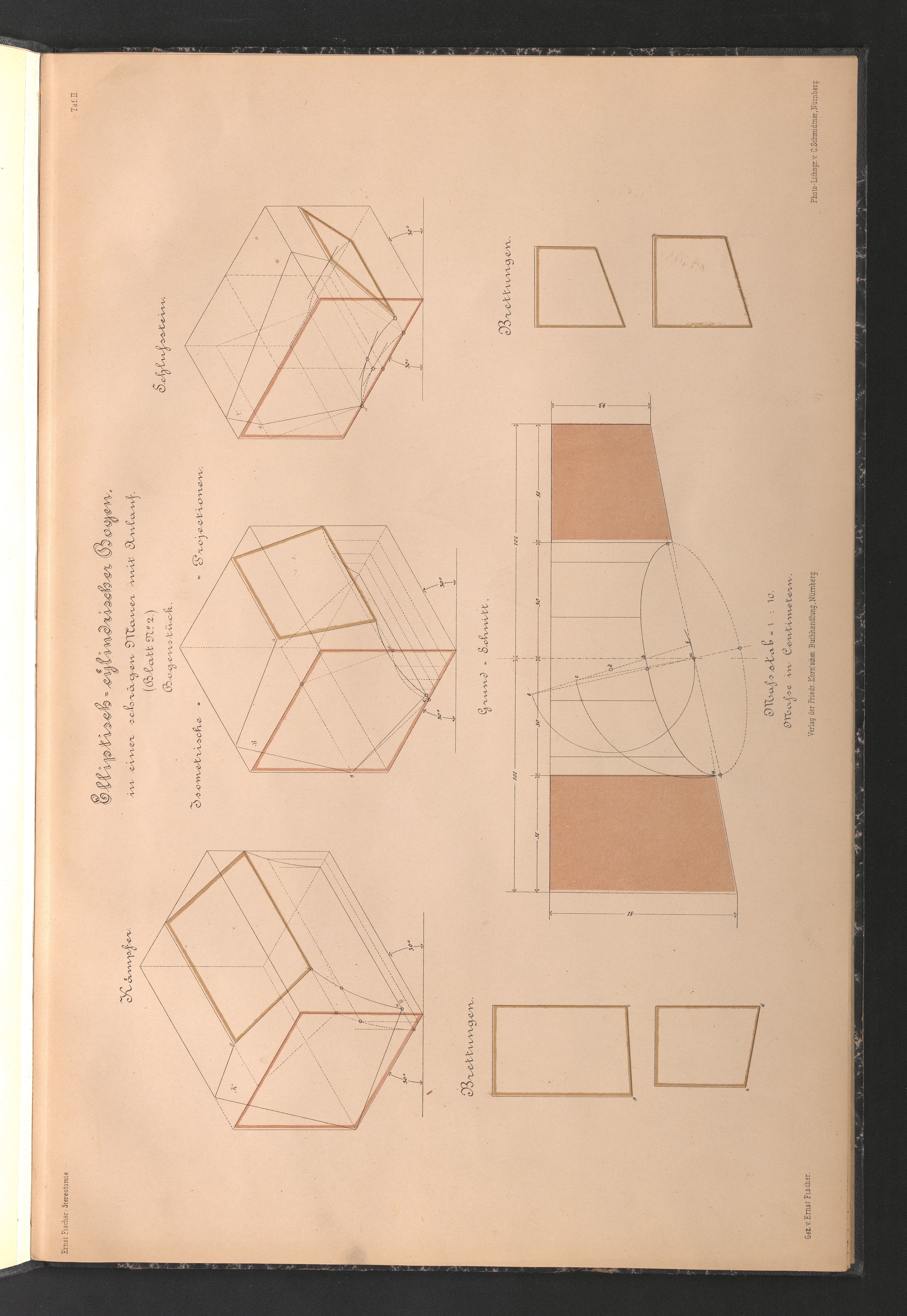 Taf. II. Elliptisch-cylindrischer Bogen in einer schrägen Mauer mit Anlauf. Blatt 2