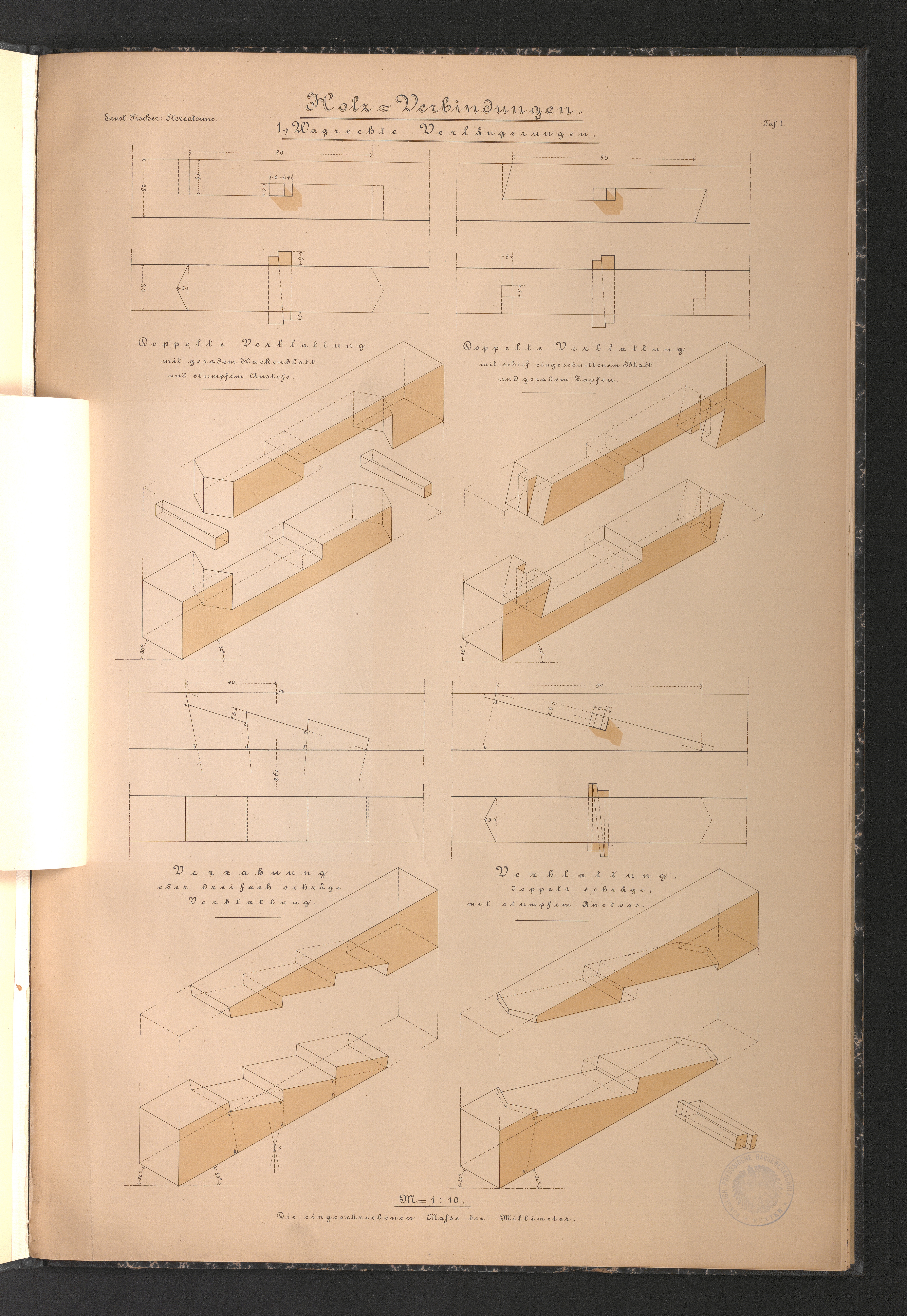 2 (1891) Und e. Anh.: Nik. v. Klobukow, Ueber die Fixirung von Tusch mittels Kaliumbichromat und Glycerin 6 Blätter Originalzeichnungen von Holzverbindungen