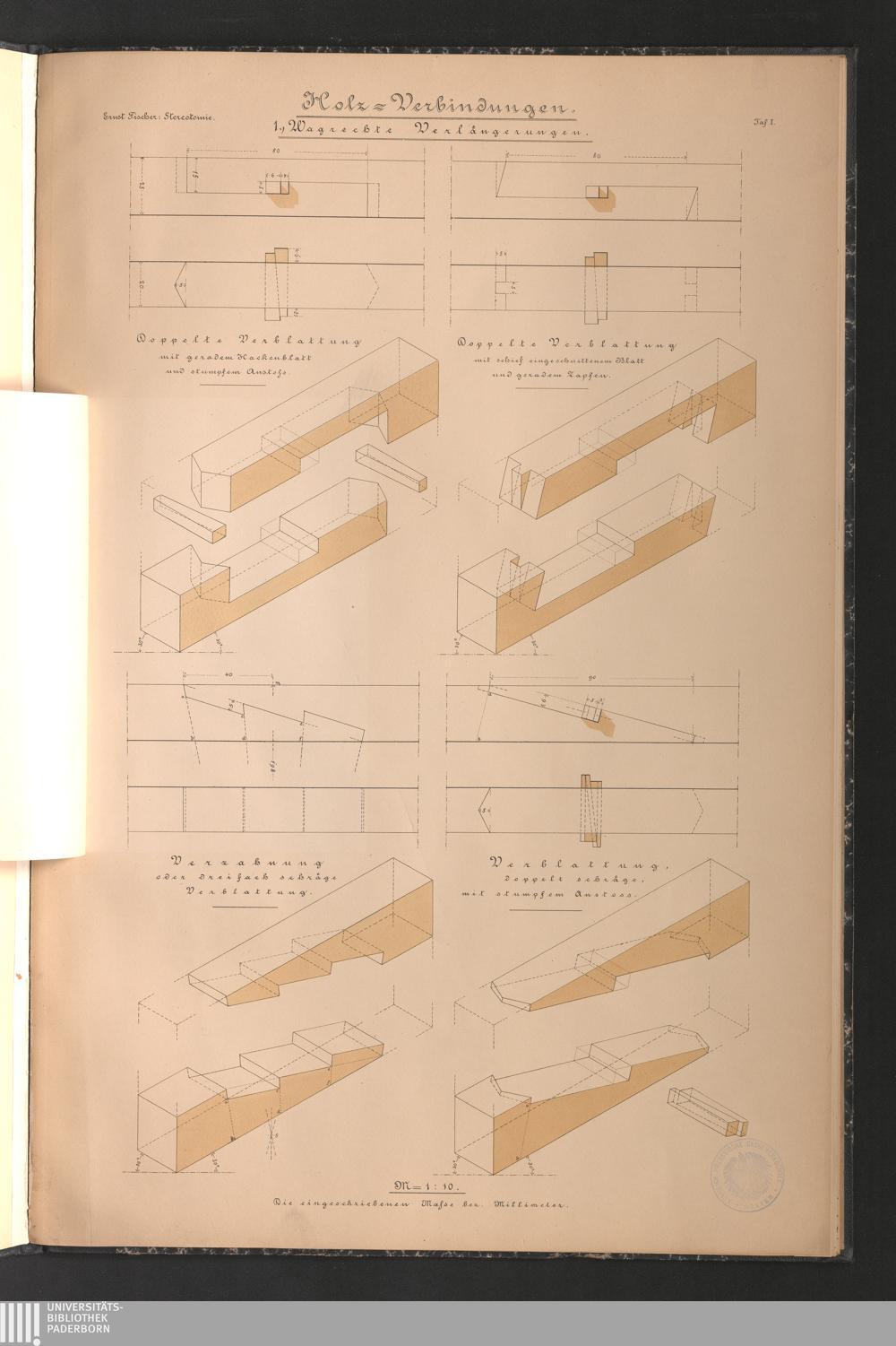 Taf. I. Holz-Verbindungen. 1., Wagrechte Verlängerungen.