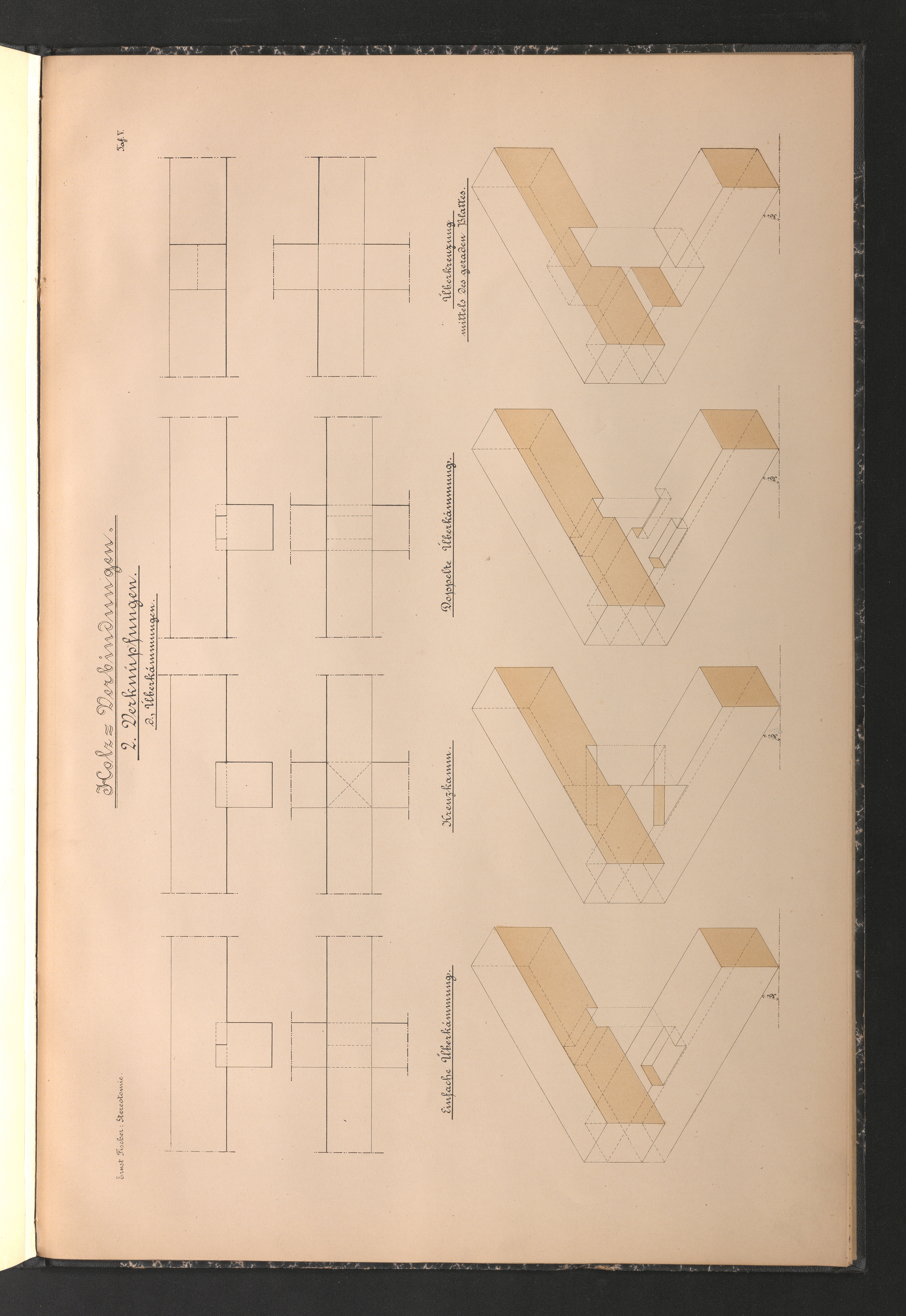 2 (1891) Und e. Anh.: Nik. v. Klobukow, Ueber die Fixirung von Tusch mittels Kaliumbichromat und Glycerin 6 Blätter Originalzeichnungen von Holzverbindungen
