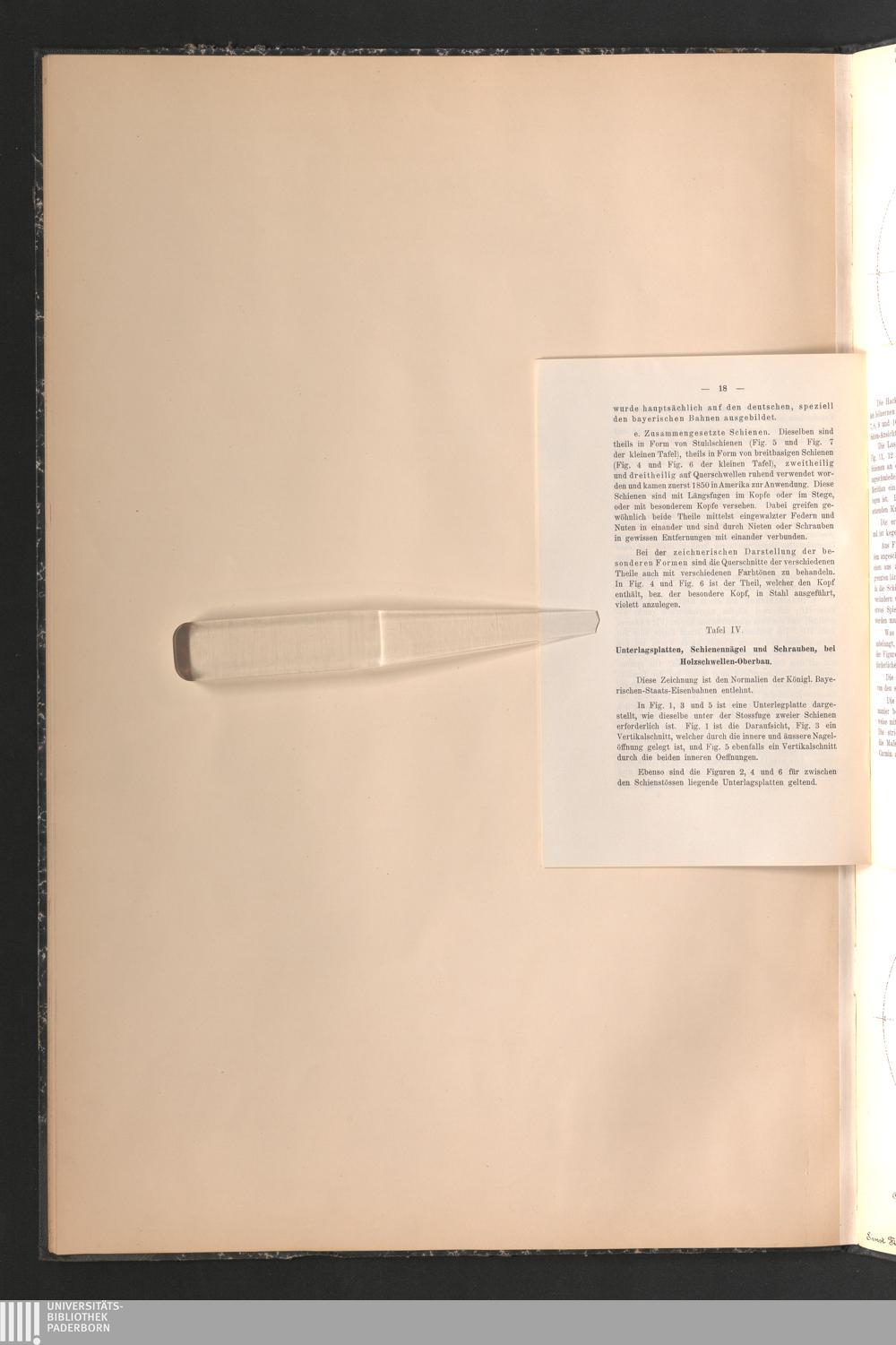 Taf. IV. Unterlagsplatten, Schienennägel und Schrauben bei Holzschwellen-Oberbau,[...]