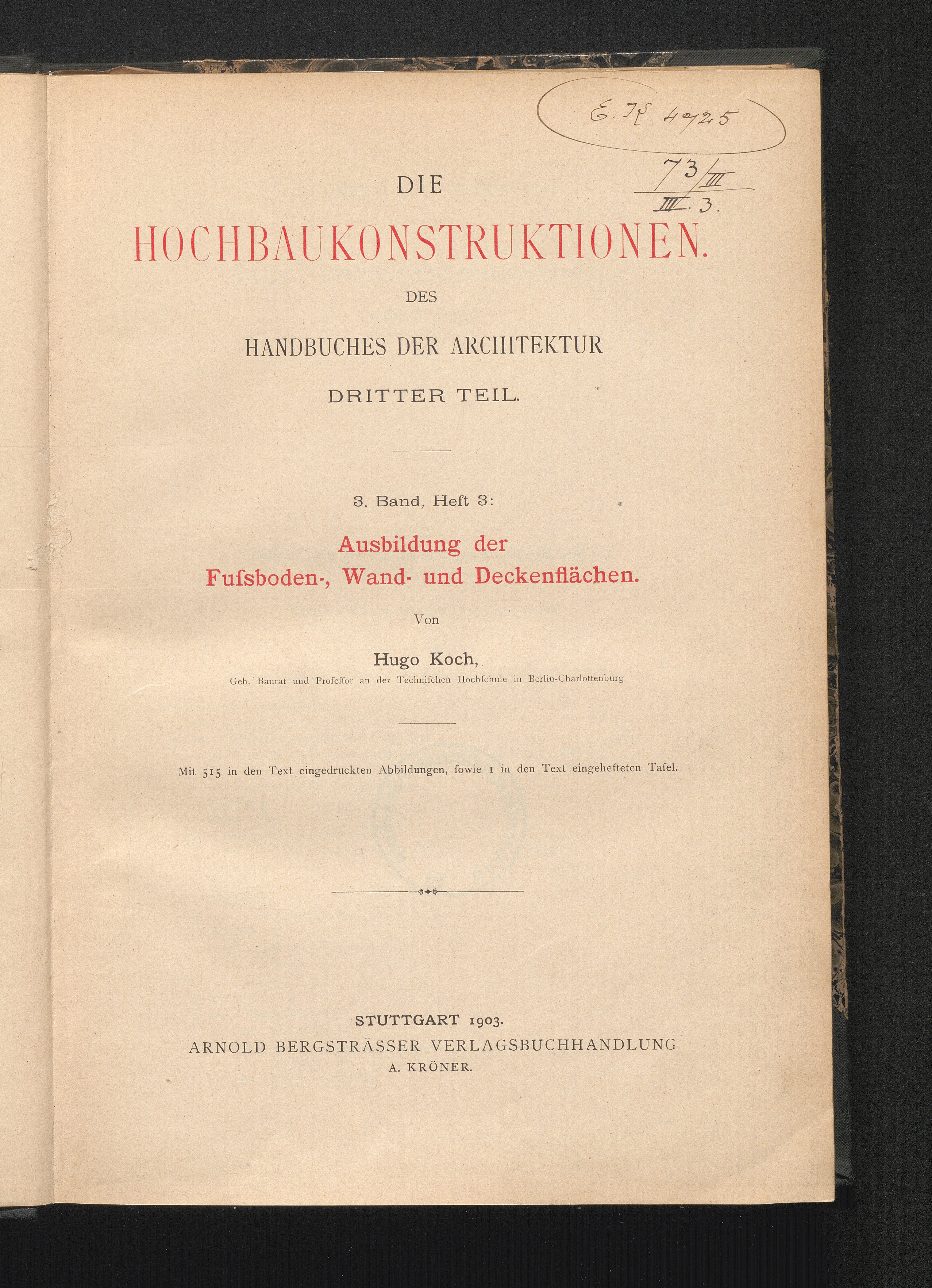 Ausbildung der Fussboden-, Wand- und Deckenflächen / von Hugo Koch