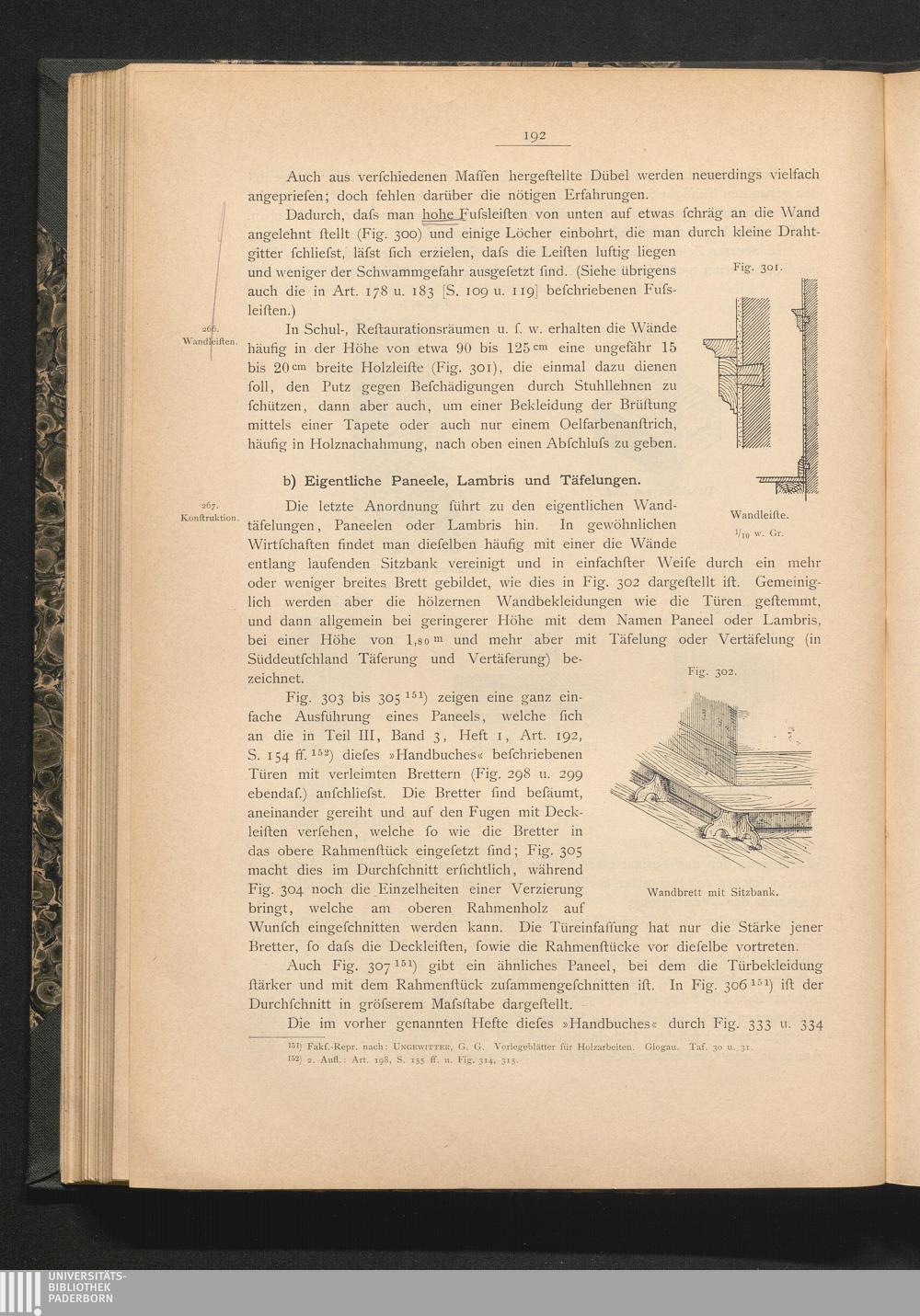b) Eigentliche Paneele, Lambris und Täfelungen
