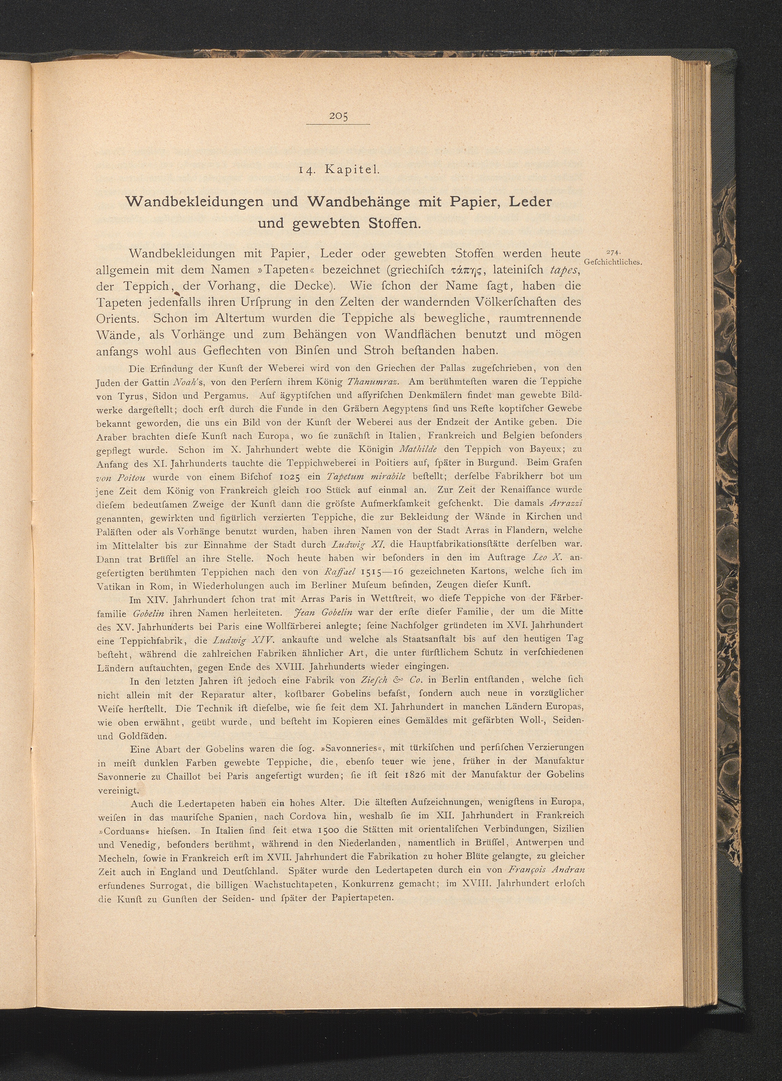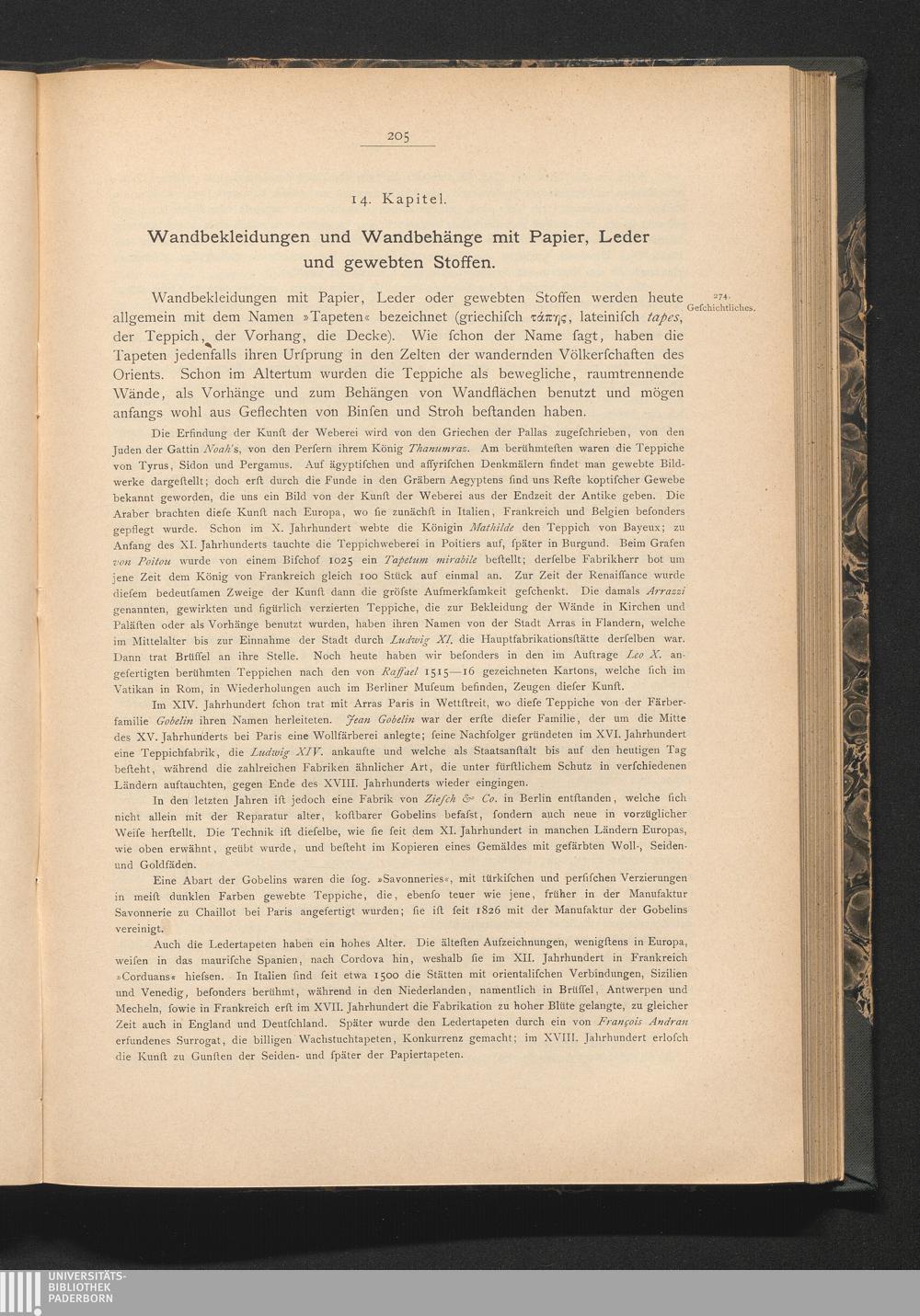 14. Kap. Wandbekleidungen und Wandbehänge mit Papier, Leder und gewebten Stoffen