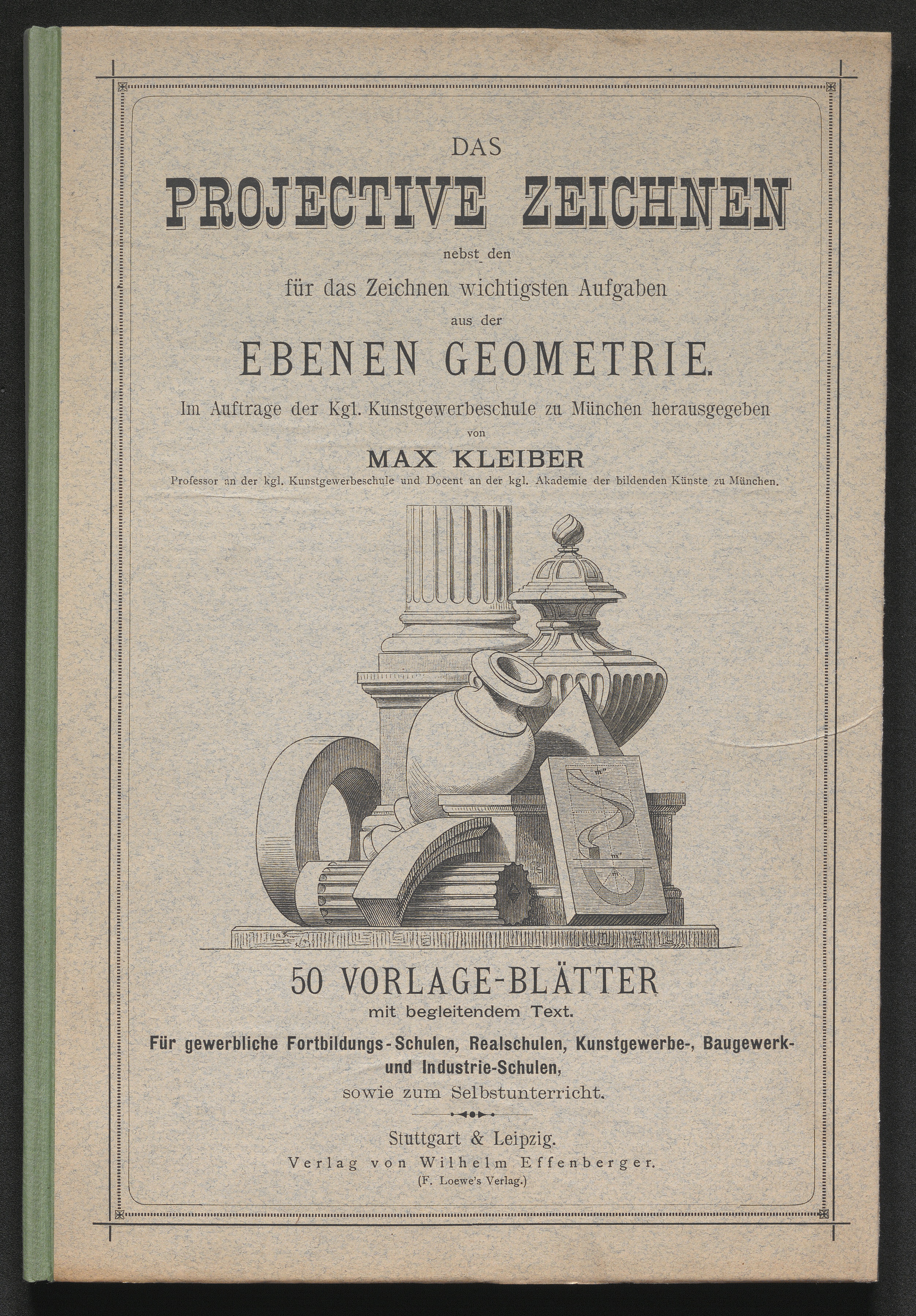 Das projective Zeichnen : nebst den für das Zeichnen wichtigsten Aufgaben aus der ebenen Geometrie ; 50 Vorlage-Blätter mit begleitendem Text ; für gewerbliche Fortbildungs-Schulen, Realschulen, Kunstgewerbe-, Baugewerk- und Industrie-Schulen sowie zum Selbstunterricht / herausgegeben von Max Kleiber