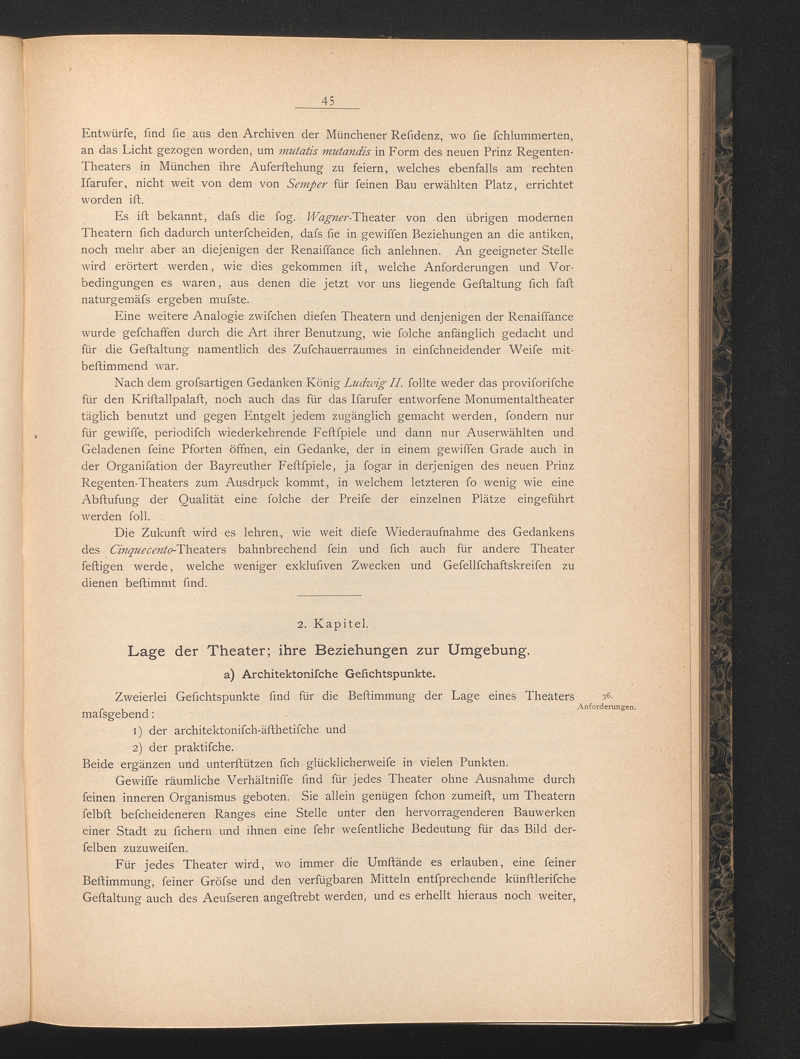 2. Kap. Lage der Theater; ihre Beziehungen zur Umgebung