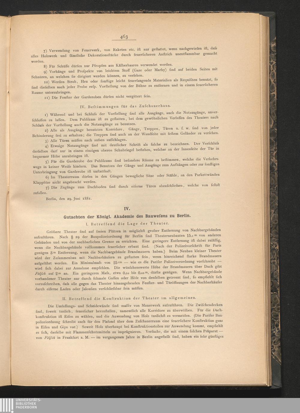 IV) Gutachten der Königl. Akademie des Bauwesens zu Berlin