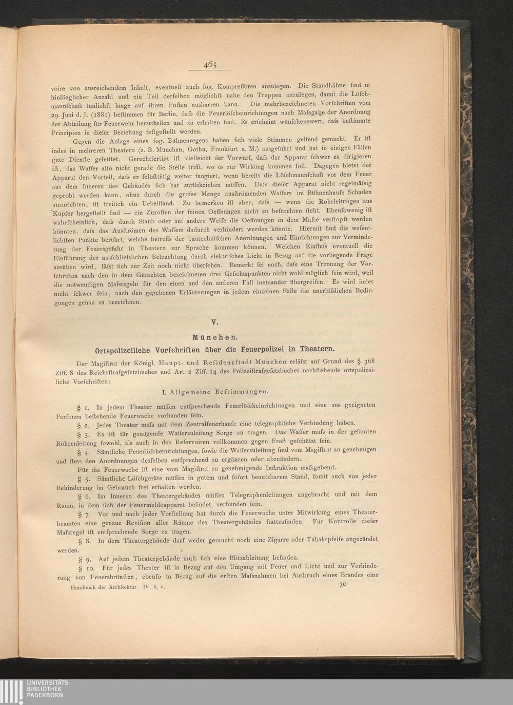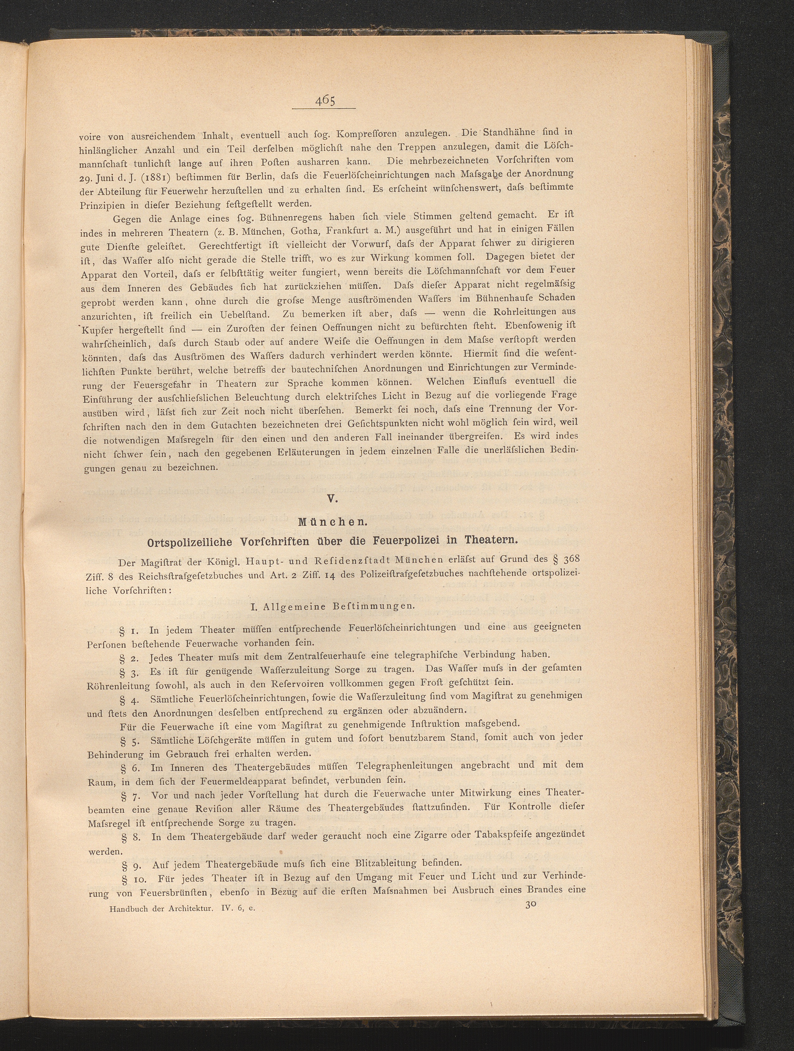 V) München. Ortspolizeiliche Vorschriften über die Feuerpolizei in Theatern
