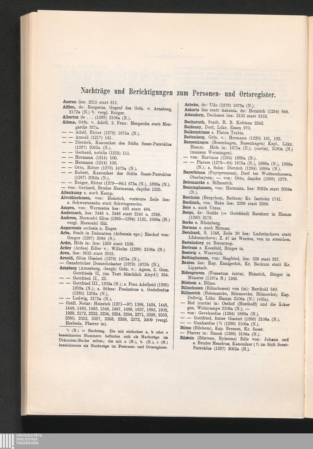 Nachträge und Berichtigungen zum Personen- und Ortsregister.