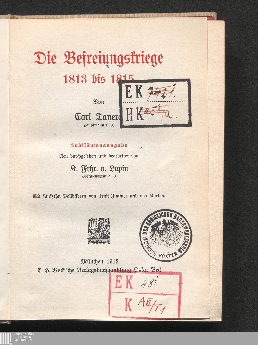 Die Befreiungskriege 1813 bis 1815 / von Carl Tanera