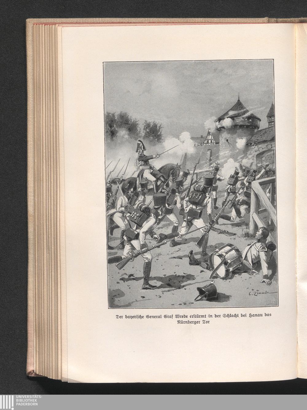 Der bayerische General Graf Wrede erstürmt in der Schlacht bei Hanau das Nürnberger[...]