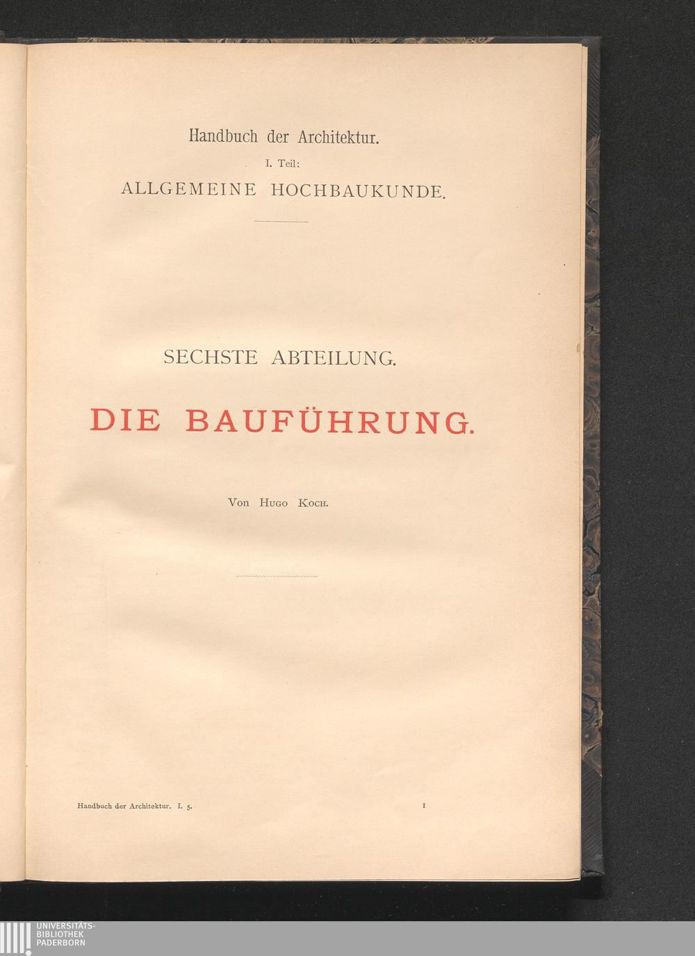 Die Bauführung : mit Einschluß der Baukostenberechnung, der Baurüstungen und der Beförderungsmittel von Baumaterialien auf der Baustelle / von Hugo Koch