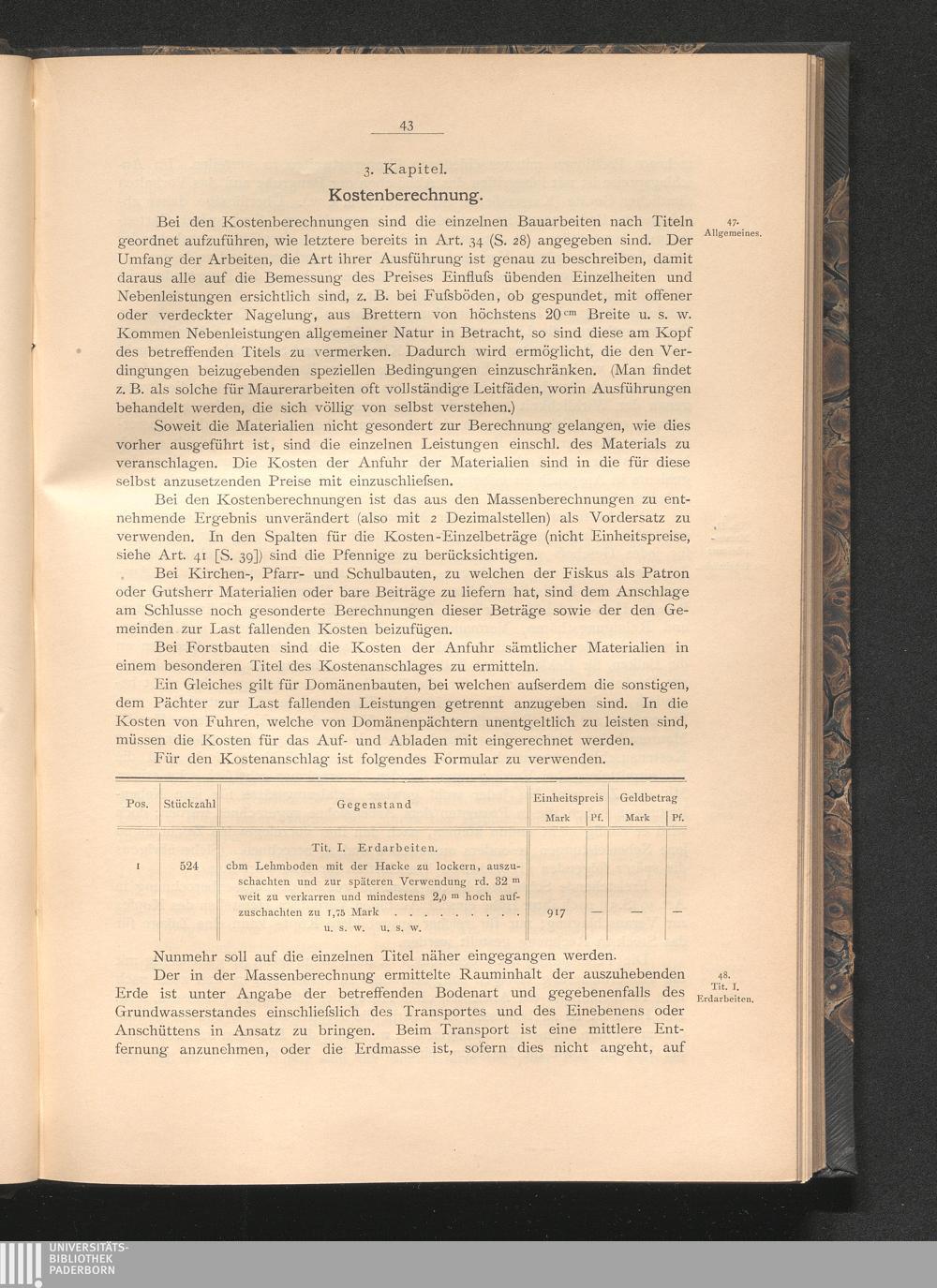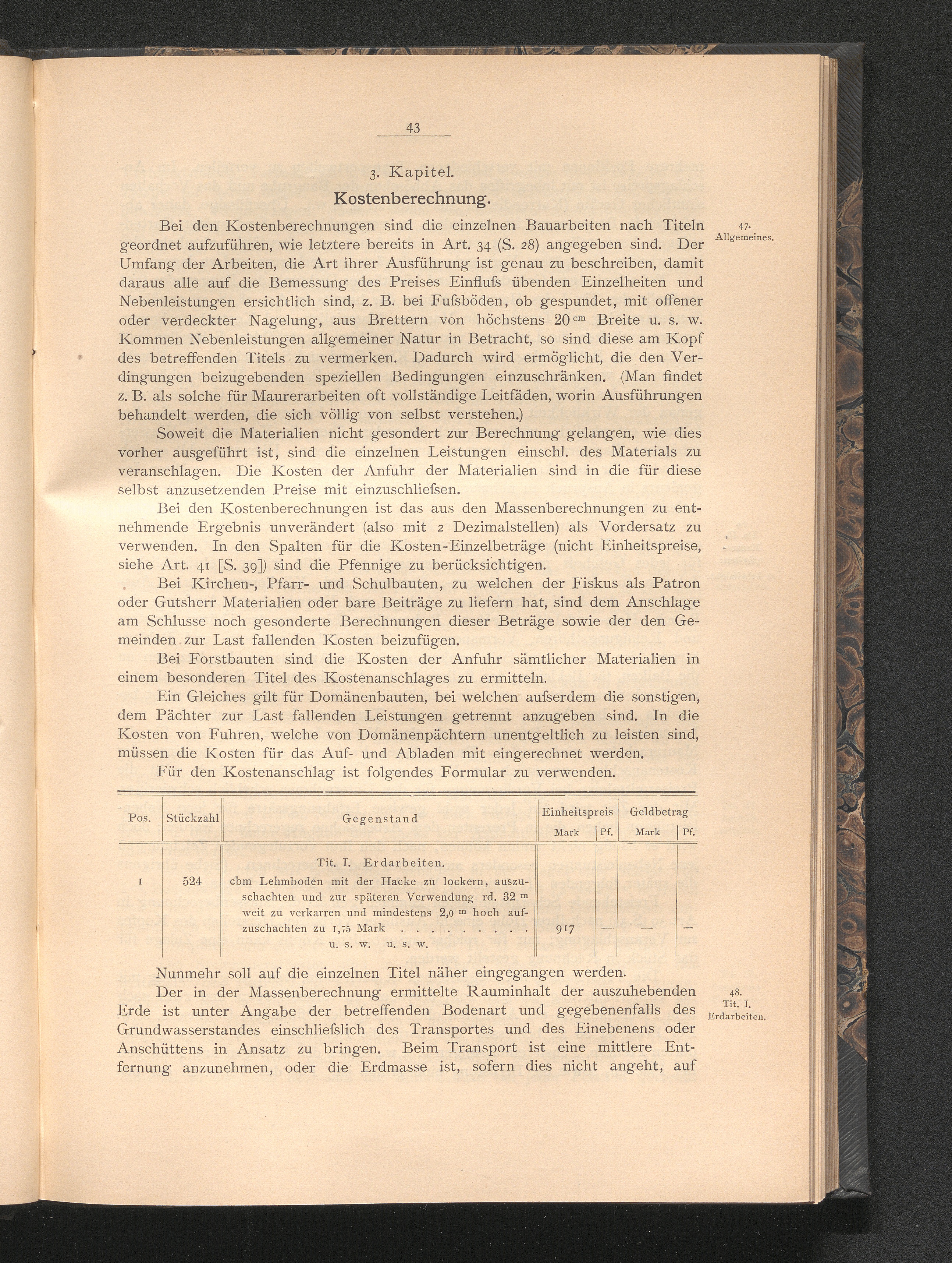 3. Abschnitt. Aufstellung des Kostenanschlages.