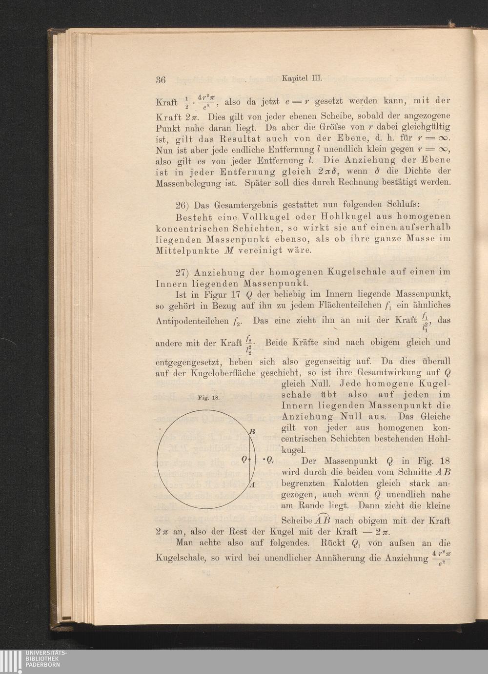 Kapitel III. Anziehung der homogenen Kugelschale, der Vollkugel und Hohlkugel.