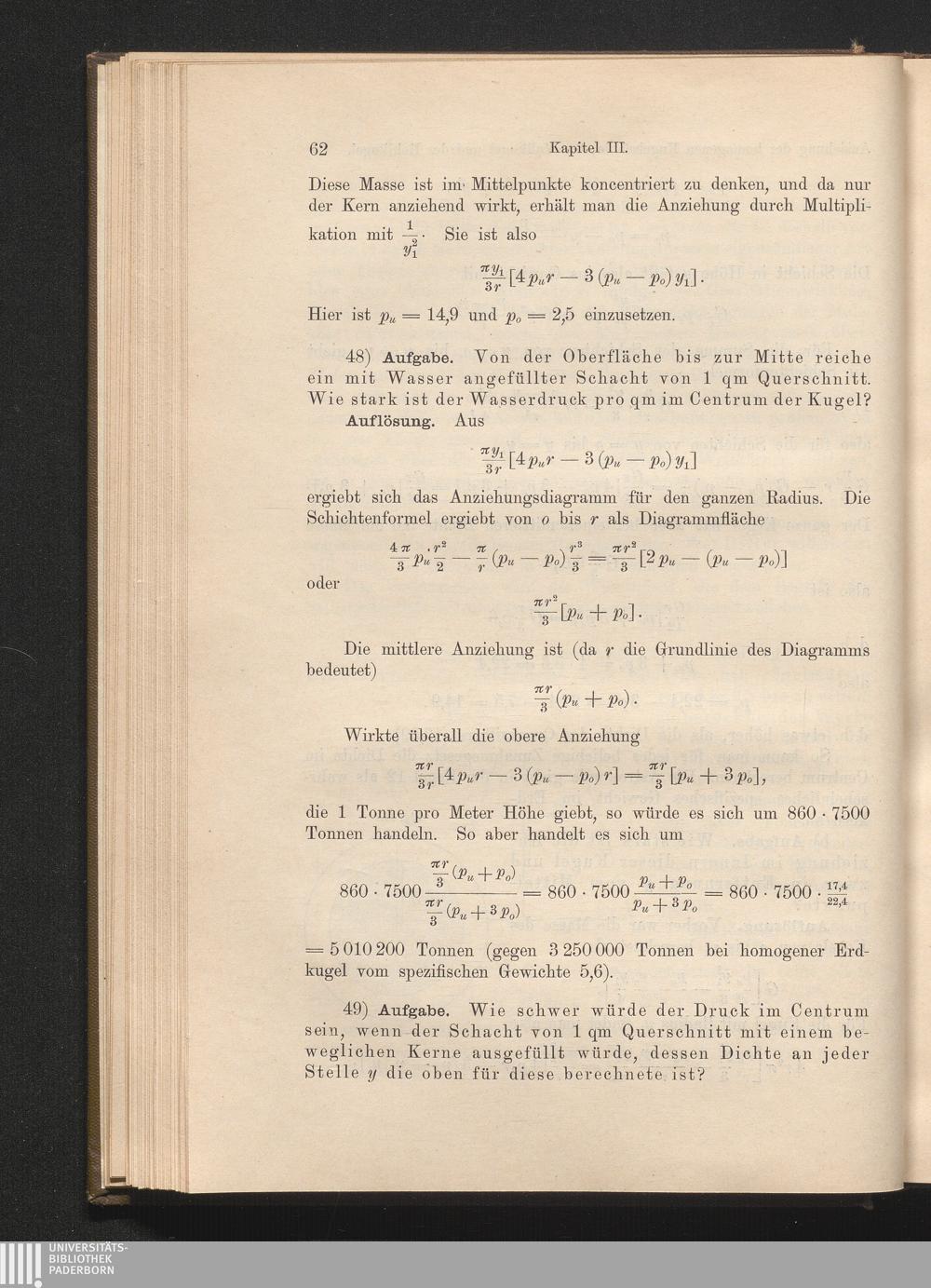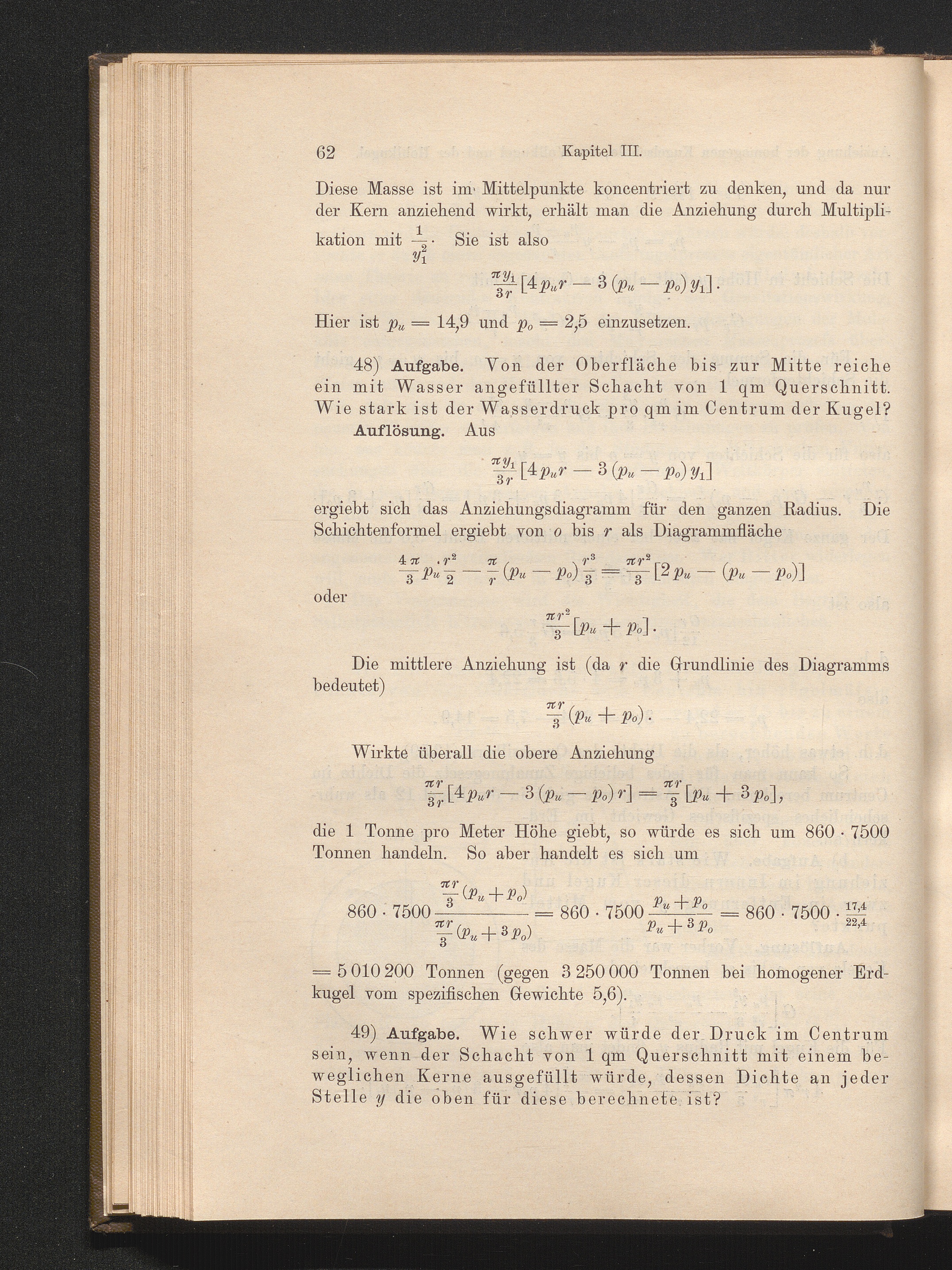 49) Druck im Innern der Erdkugel bei gleicher und veränderlicher Dichte