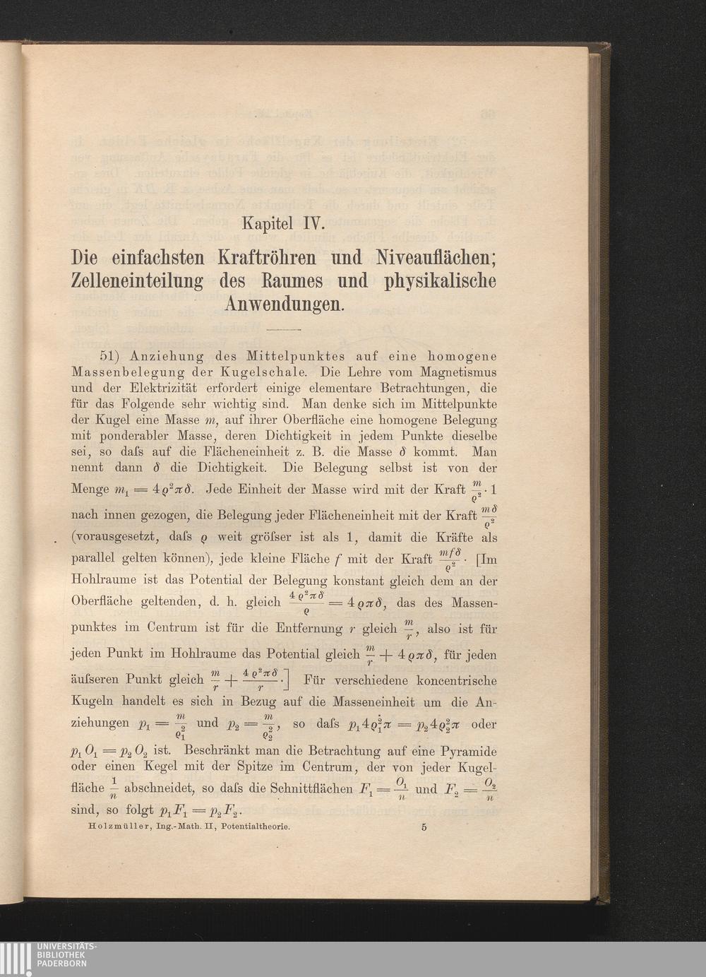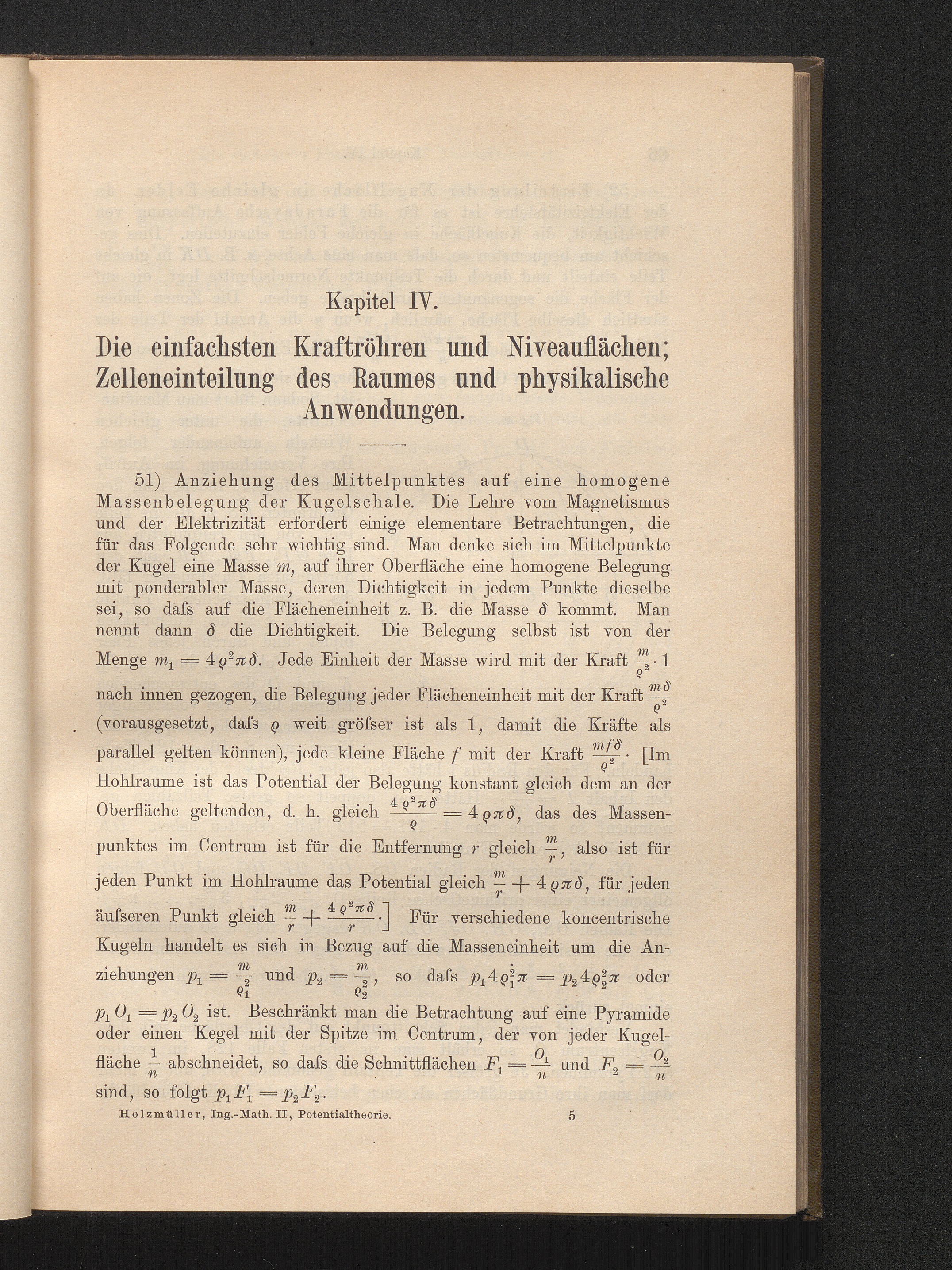 51) Anziehung des Mittelpunktes auf eine homogene Massenbelegung der Kugelschale[...]