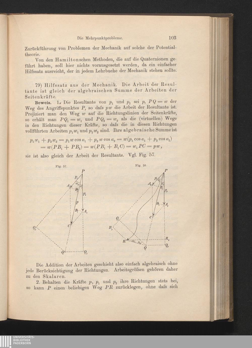 79) Hilfssatz aus der Mechanik, algebraische Addition der Arbeiten betreffend