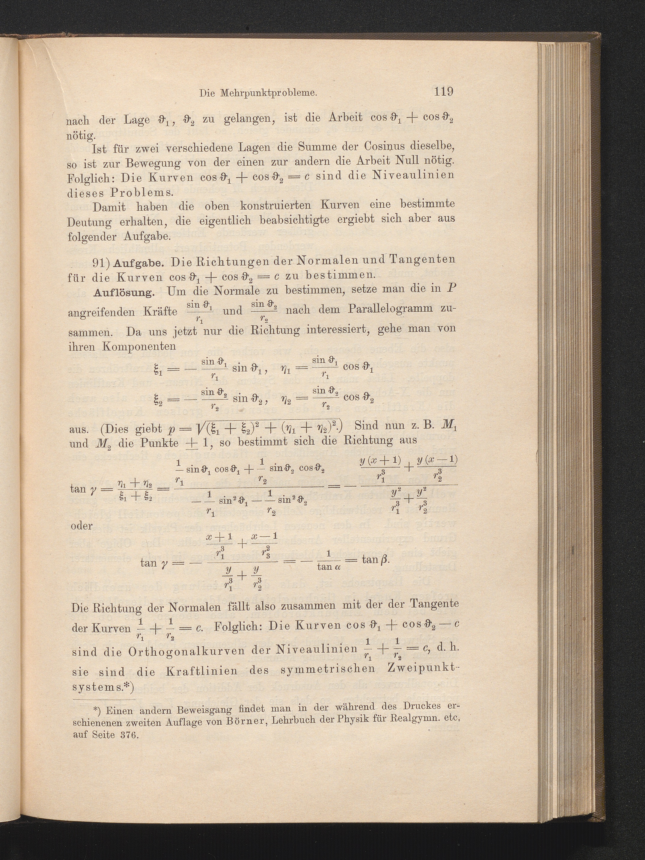 91) Richtung der Normalen und Tangenten der Kraftlinien für das Zweipunktproblem