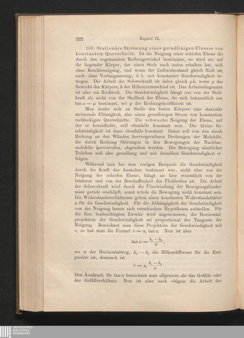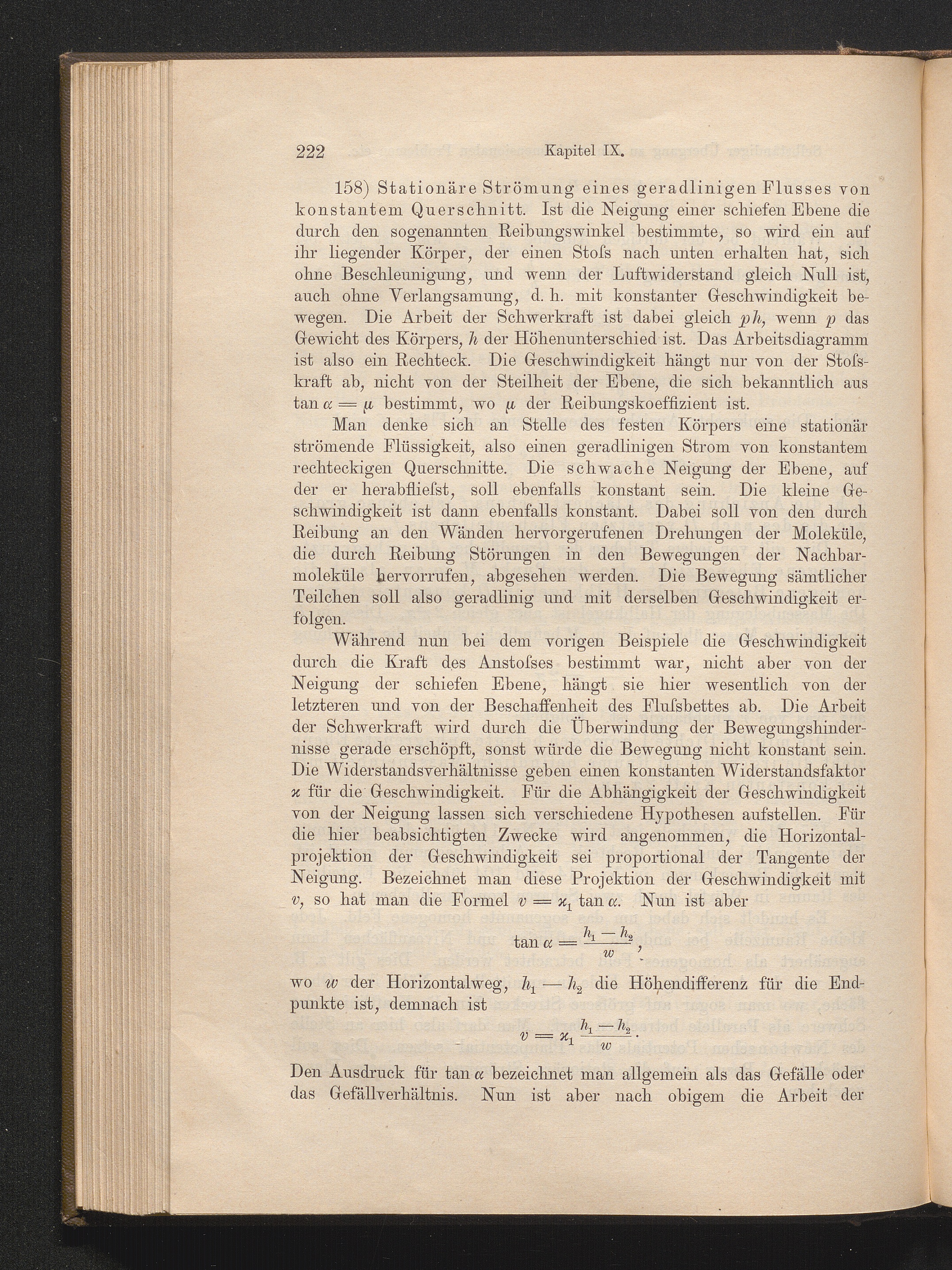 158) Stationäre Strömung eines geradlinigen Flusses von konstantem Querschnitt