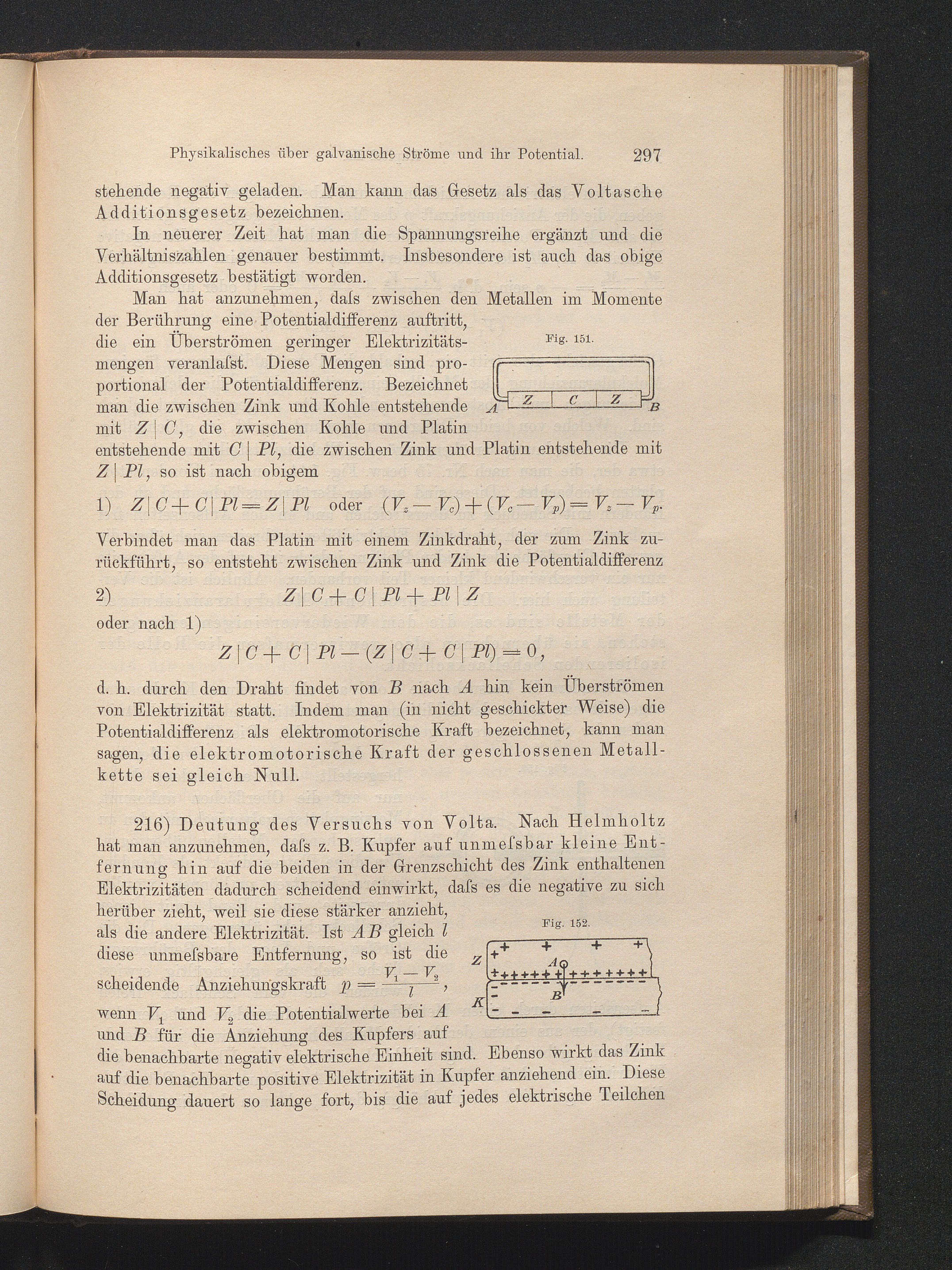 Kapitel XI. Physikalisches über galvanische Ströme und ihr Potential.