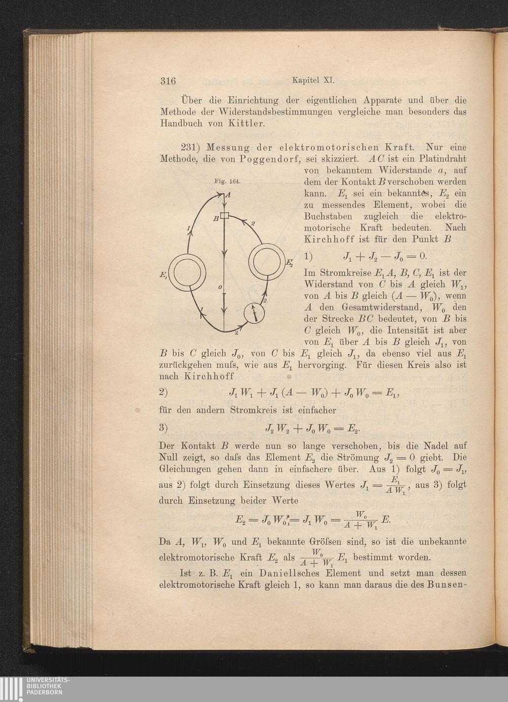 Kapitel XI. Physikalisches über galvanische Ströme und ihr Potential.