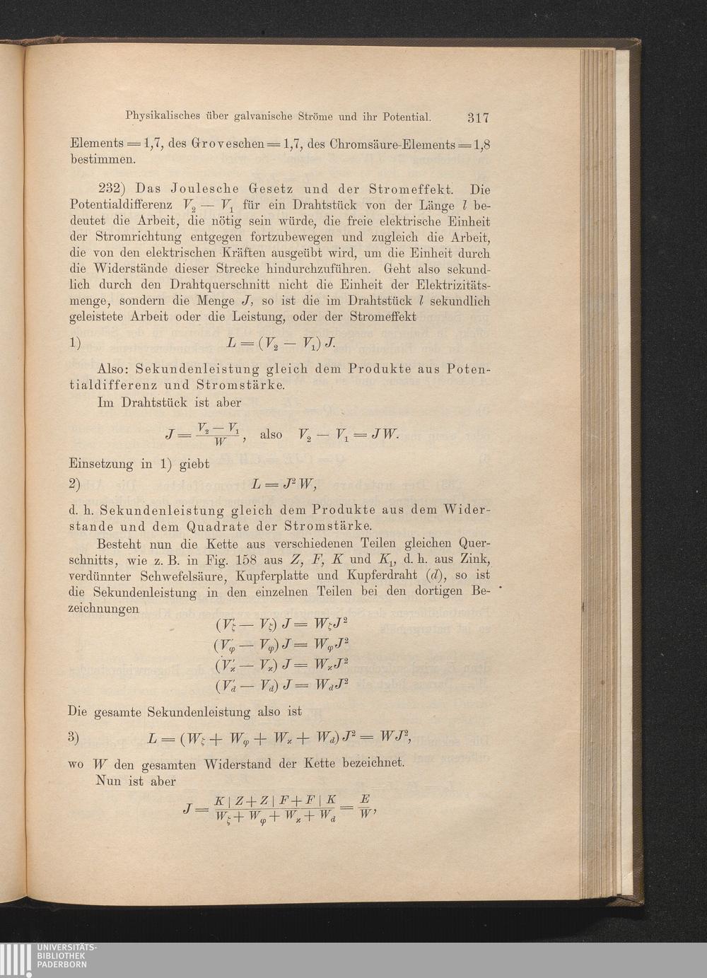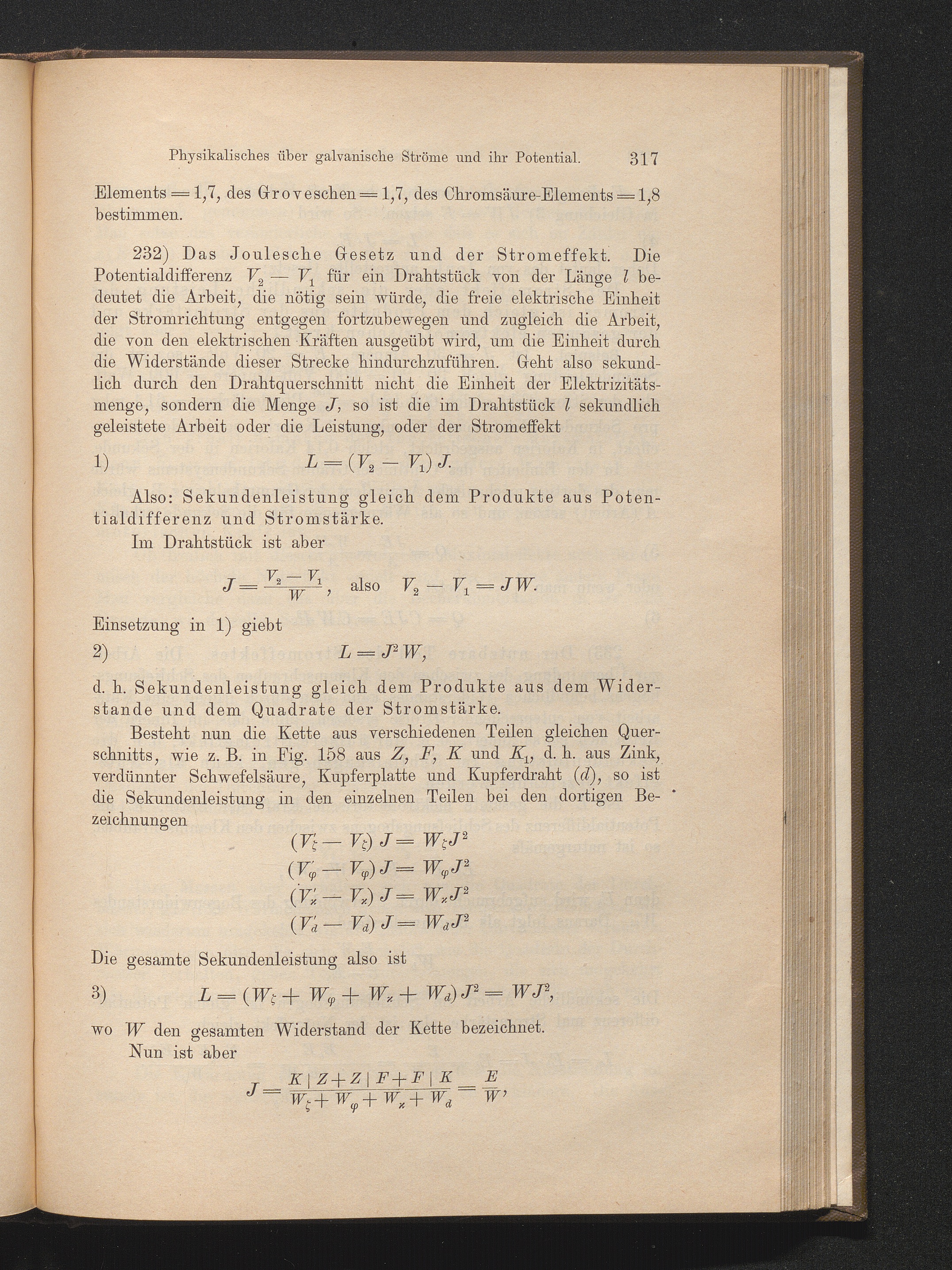 Kapitel XI. Physikalisches über galvanische Ströme und ihr Potential.