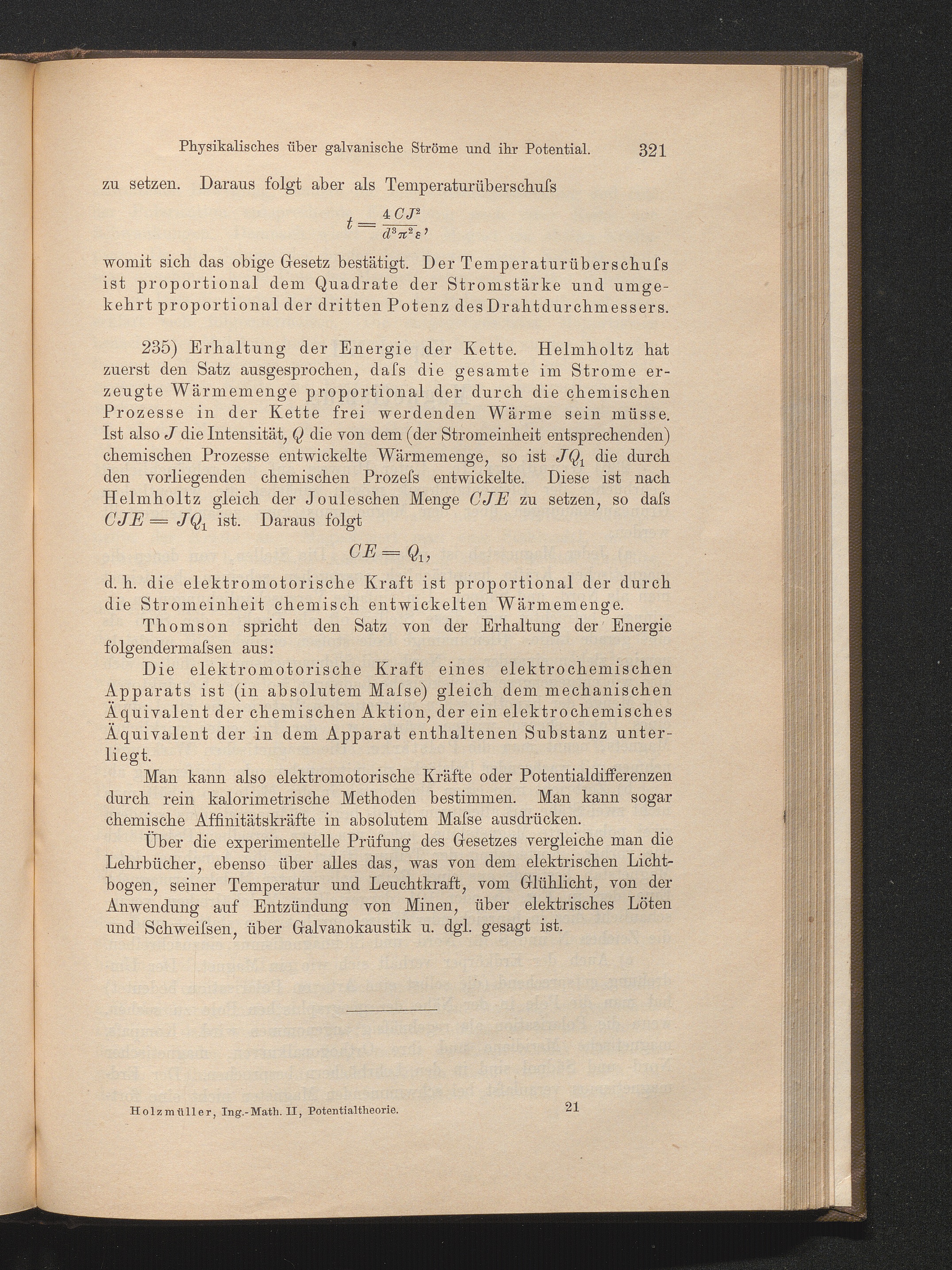 Kapitel XI. Physikalisches über galvanische Ströme und ihr Potential.